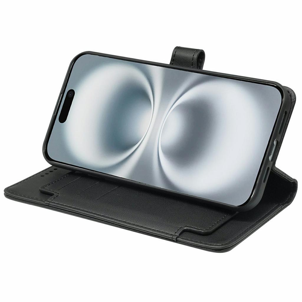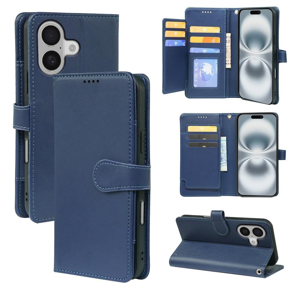 For iPhone 16 Case with 9 Card Slots PU Leather Stand Phone Cover - Black