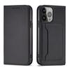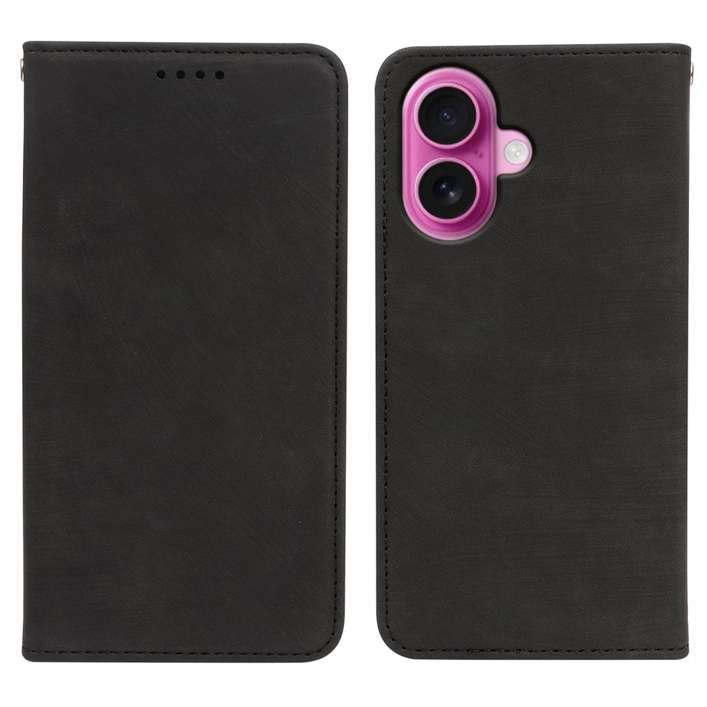For iPhone 16 Case Strong Magnetic Leather Wallet Phone Cover with Striped Texture - Black — купить товар онлайн с бесплатной доставкой до всему миру!