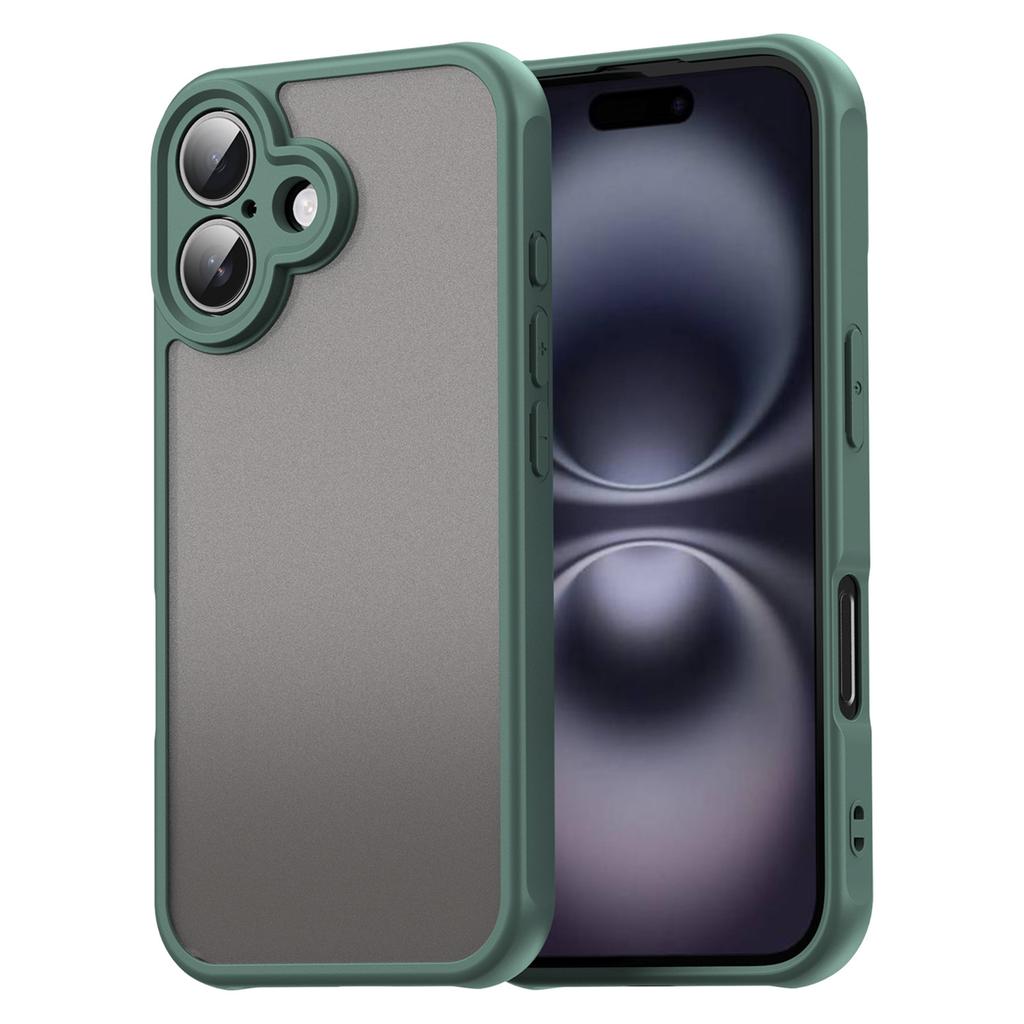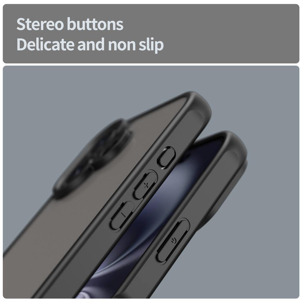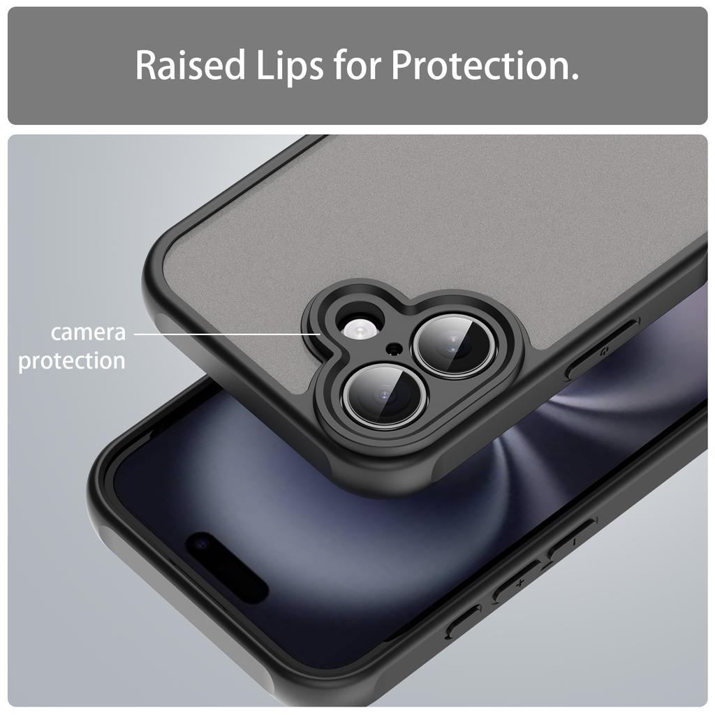 For iPhone 16 Case Drop Proof Airbags Frosted Translucent PC + TPU Phone Back Cover - Black