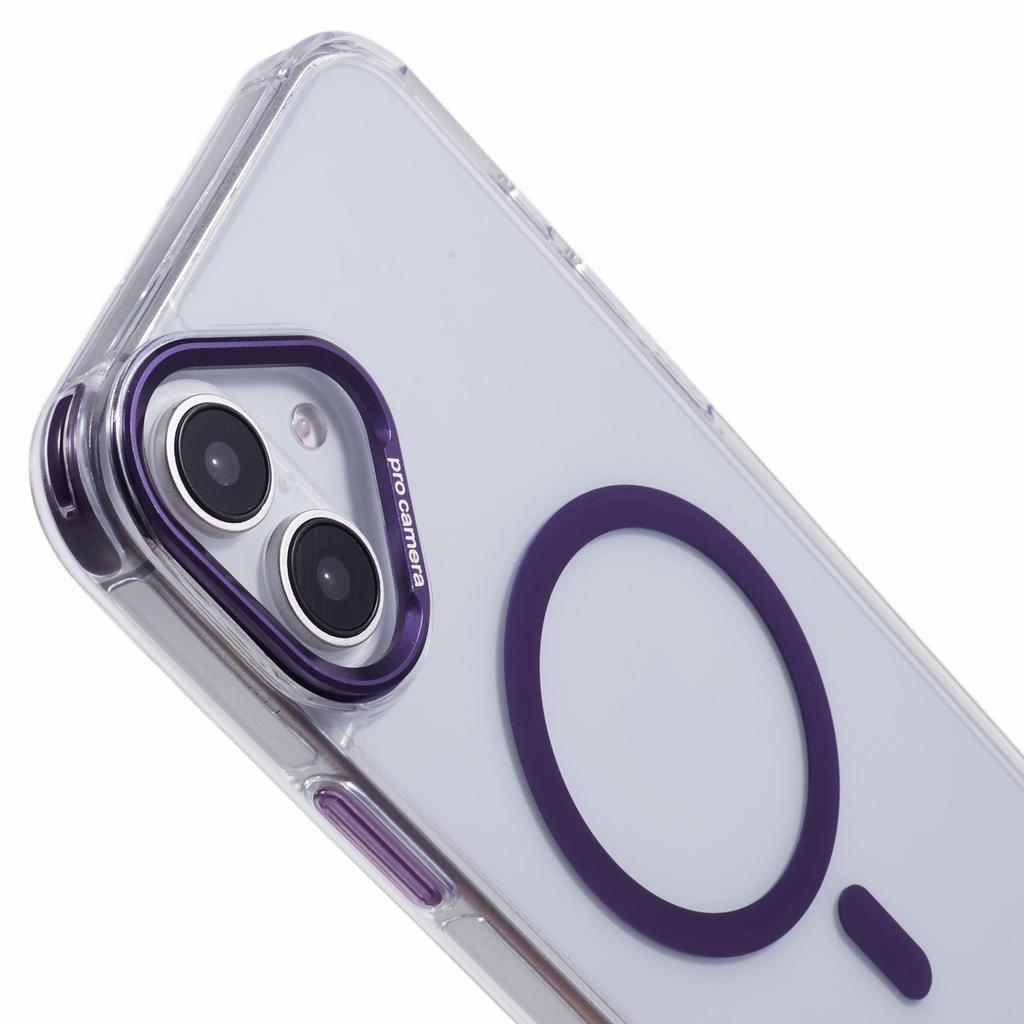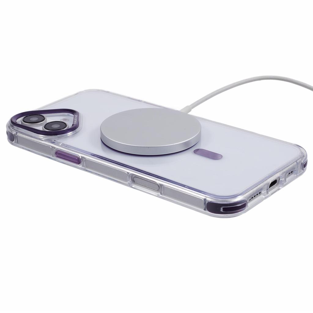 For iPhone 16 Clear Case Compatible with MagSafe Four Corners Anti-Drop PC+TPU Phone Cover - Purple