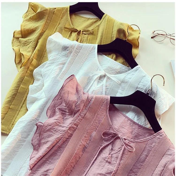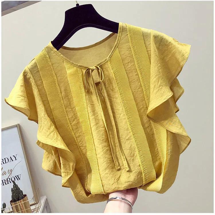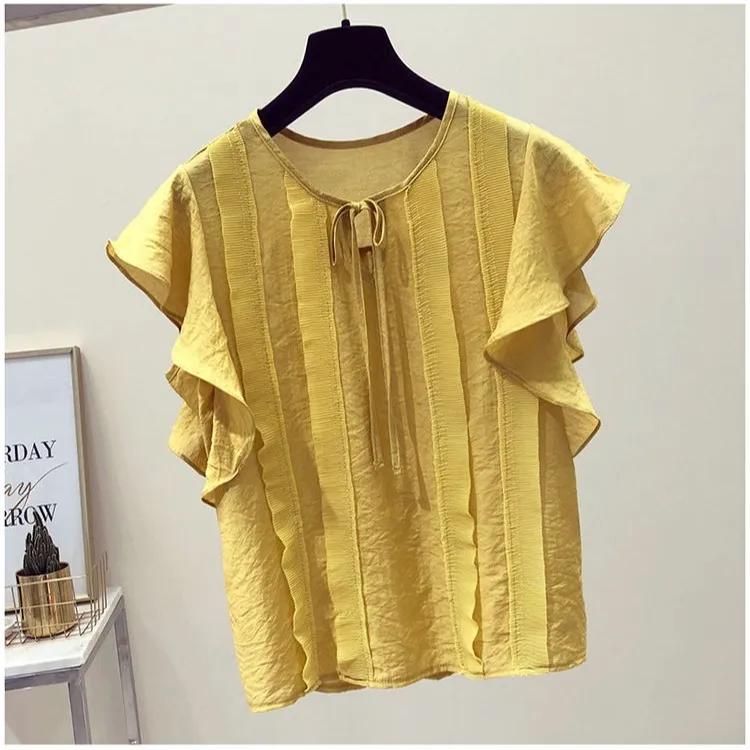 Женская летняя дизайнерская однотонная рубашка с коротким рукавом, простой удобный топ
