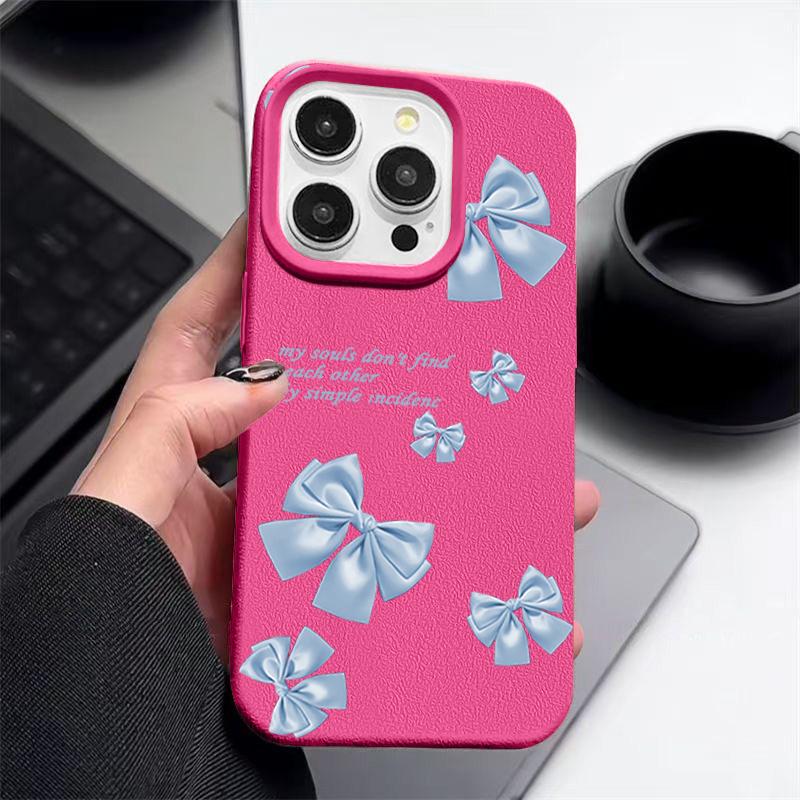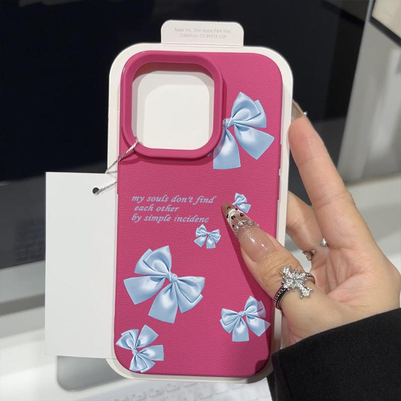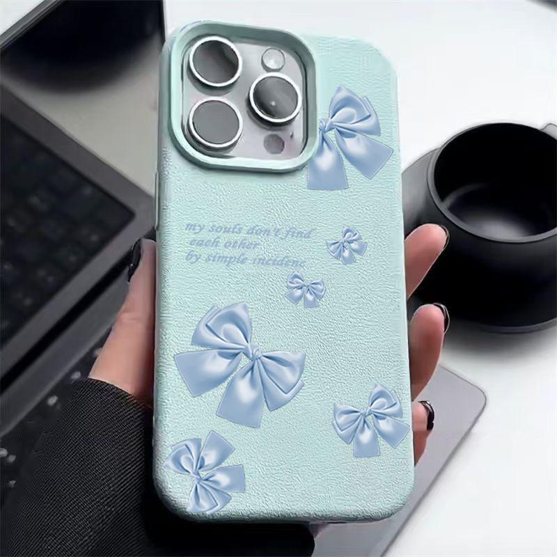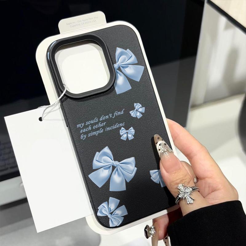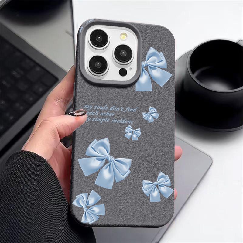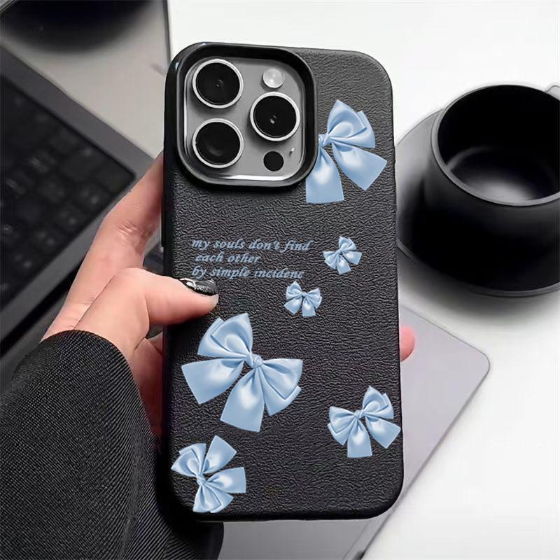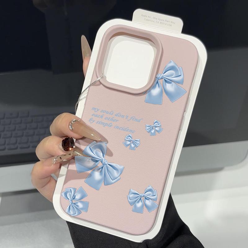 Синий мягкий матовый чехол с принтом банта для iPhone 16 Pro Max 15 Pro 14 13 12 11 ударопрочный чехол из кожи TPU с текстурой тонкий чехол для телефона