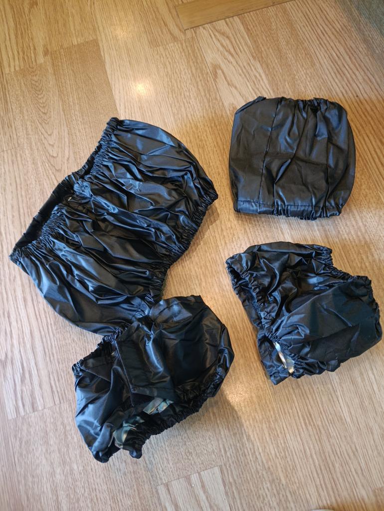 Чехлы на колеса коляски В комплекте идёт 4шт.: ✅2-х чехлов на большие колеса, диаметром от 30 до 40 см.; ✅2-х чехлов на липучках (одеваются внутри рамы) на диаметр колес от 19 до 25 см. Изготовлены из водонепропускного материала, надежно удерживают внутри грязь, песок и влагу. Легко одеваются и стираются, быстро сохнут. Подходят для колясок с передними поворотными колесами. Со своей задачей справляется отлично. Заказом довольная. Рекомендую 👍