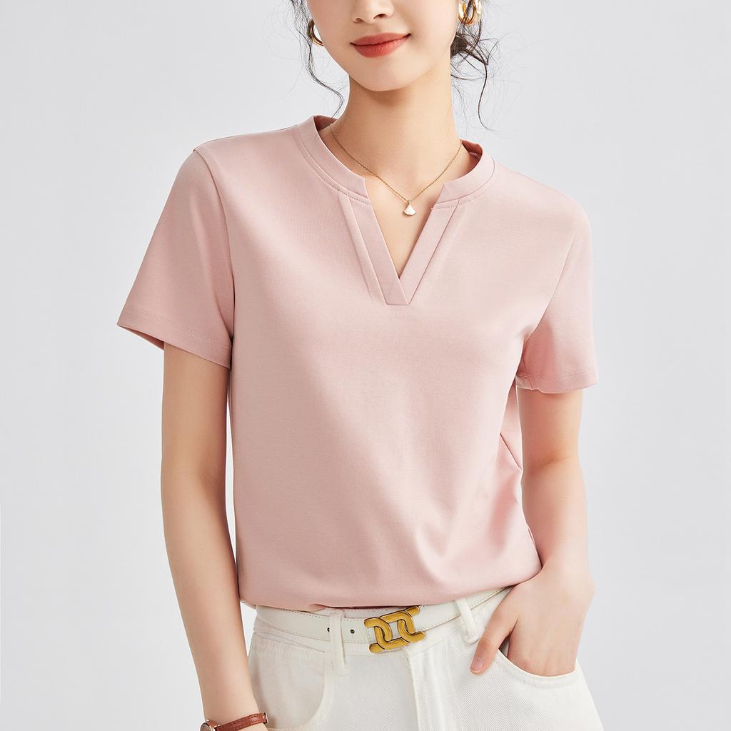 Женский летний топ Design Sense с короткими рукавами и V-образным вырезом, однотонный топ