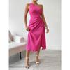 Женское весенне-летнее элегантное сексуальное платье без рукавов на одно плечо с диагональным воротником и однотонным разрезом