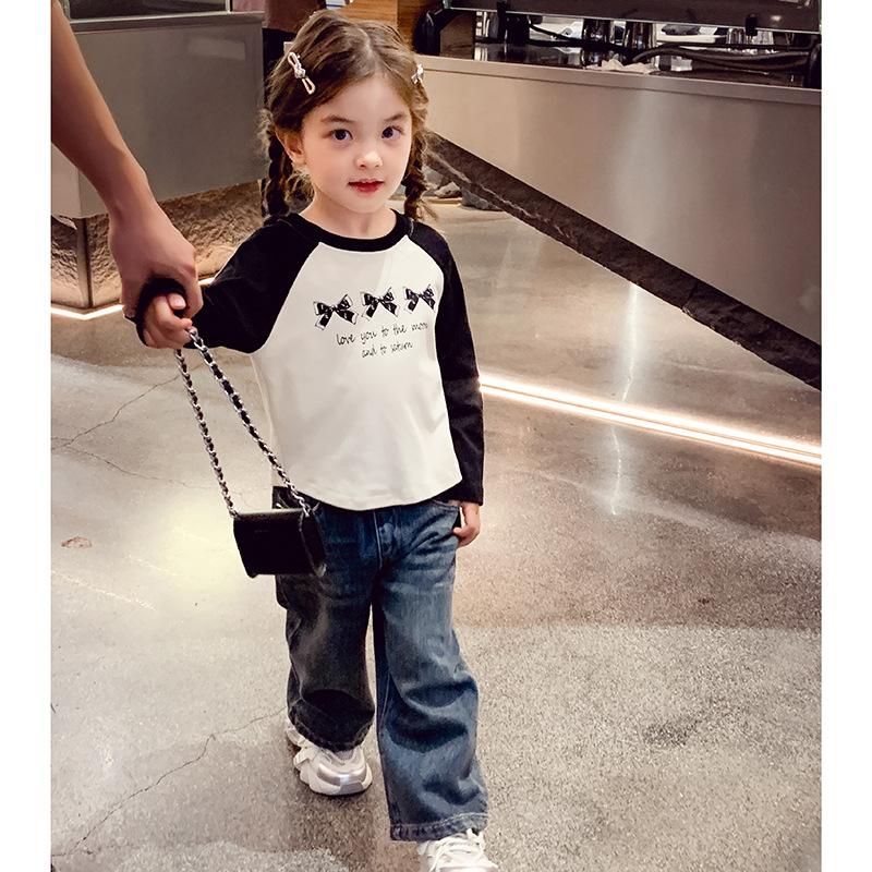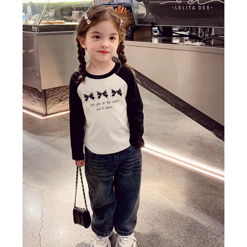 Футболка с длинными рукавами для девочек, весна 2025, повседневный детский топ контрастного цвета