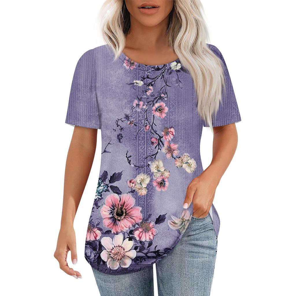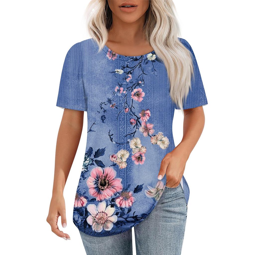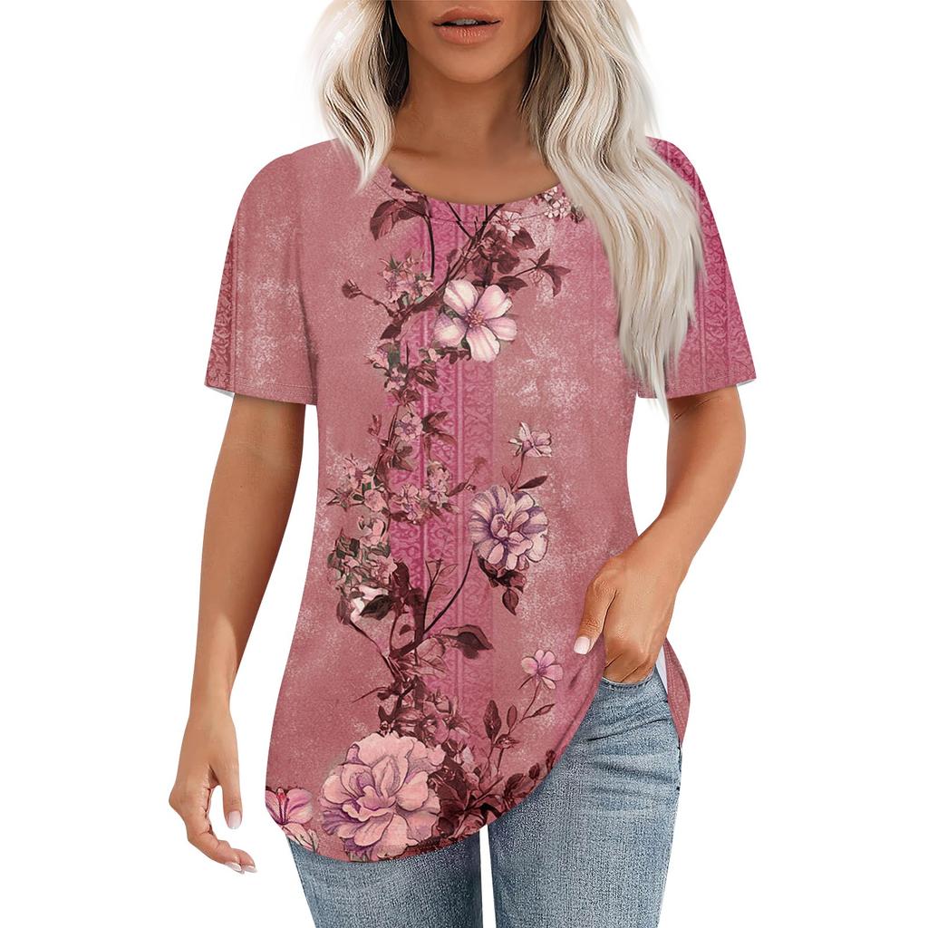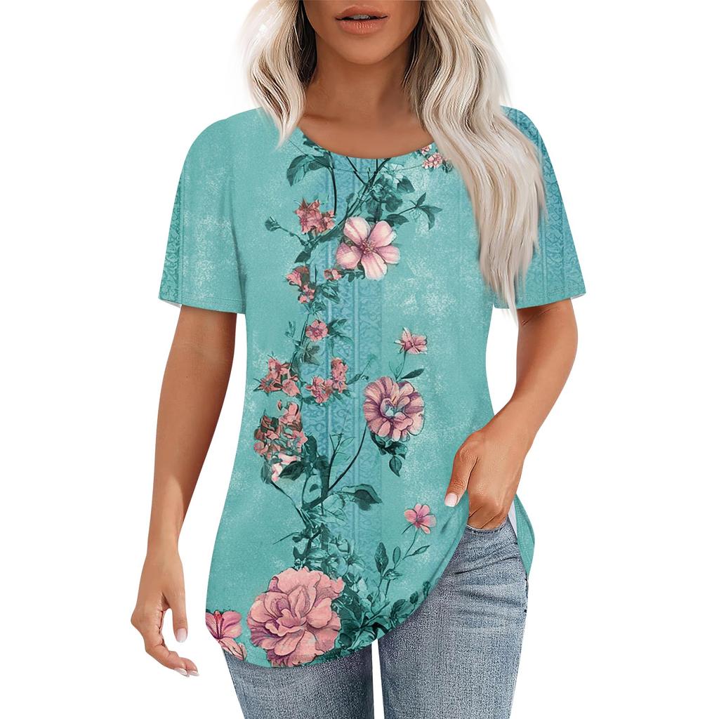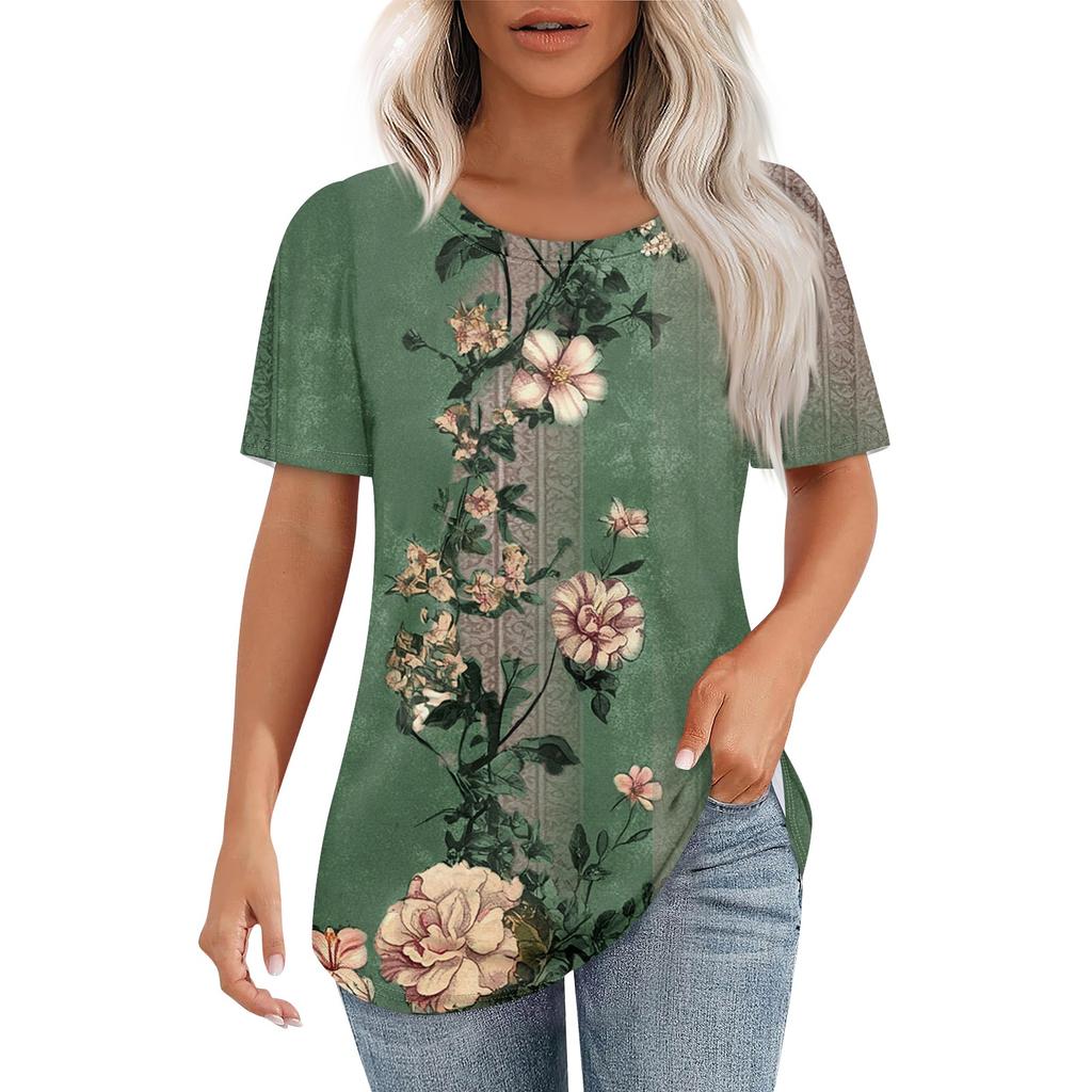Женская ретро-принтованная модная повседневная футболка с круглым вырезом и коротким рукавом