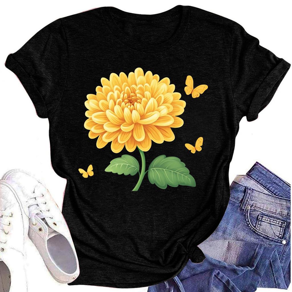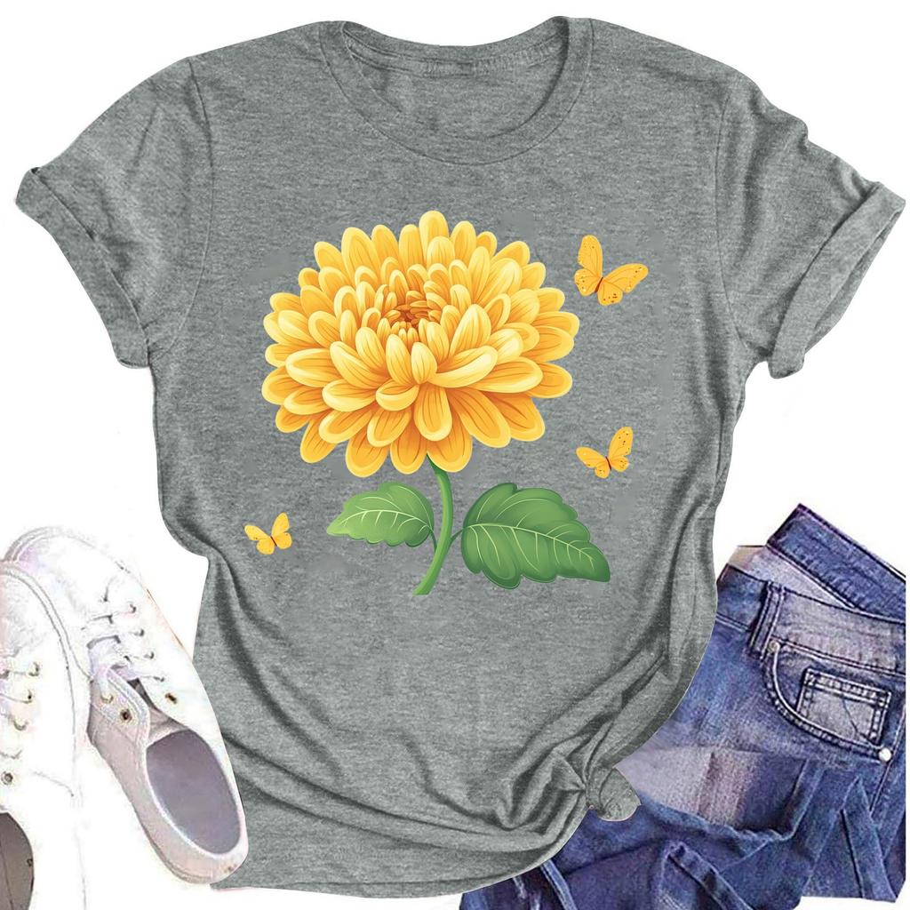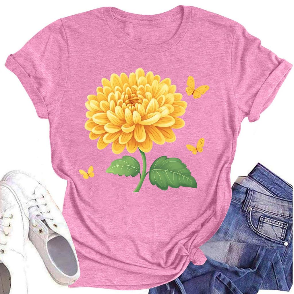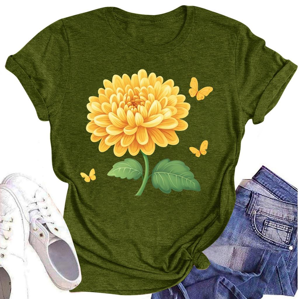 Женская повседневная футболка с круглым вырезом и цветочным принтом, короткий рукав