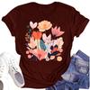 Женская повседневная футболка с круглым вырезом и цветочным принтом, короткий рукав — купить товар онлайн с бесплатной доставкой до всему миру!