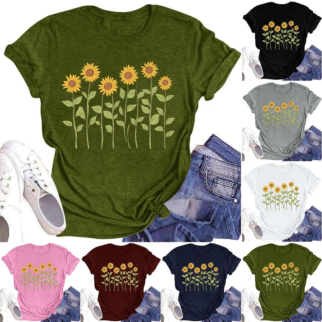 Женская повседневная футболка с круглым вырезом и цветочным принтом, короткий рукав — купить товар онлайн с бесплатной доставкой до всему миру!