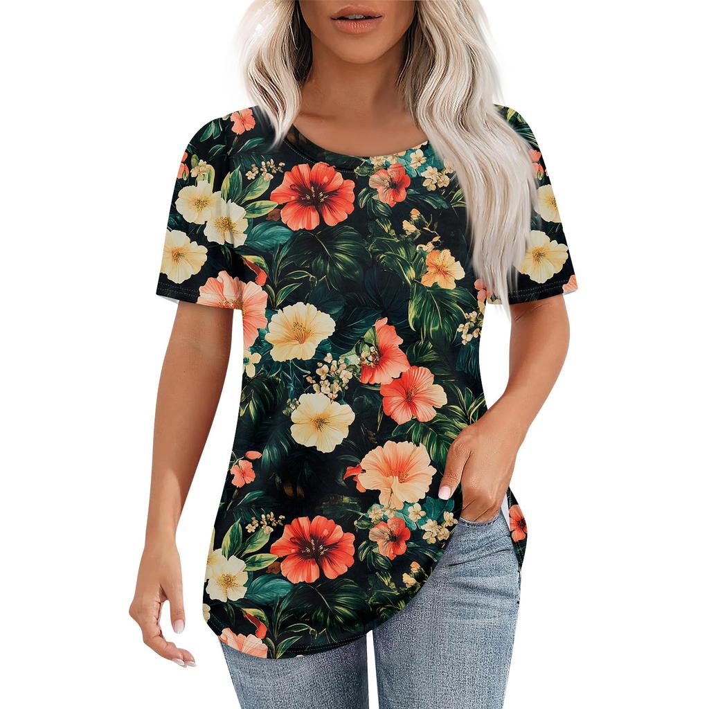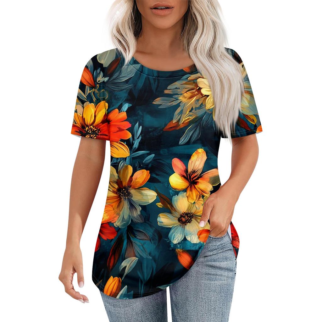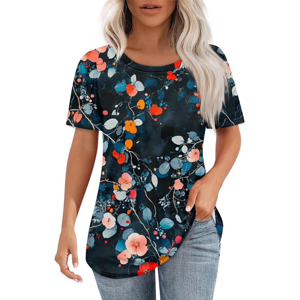 Женская ретро-принтованная модная повседневная футболка с круглым вырезом и коротким рукавом