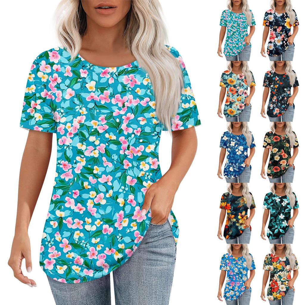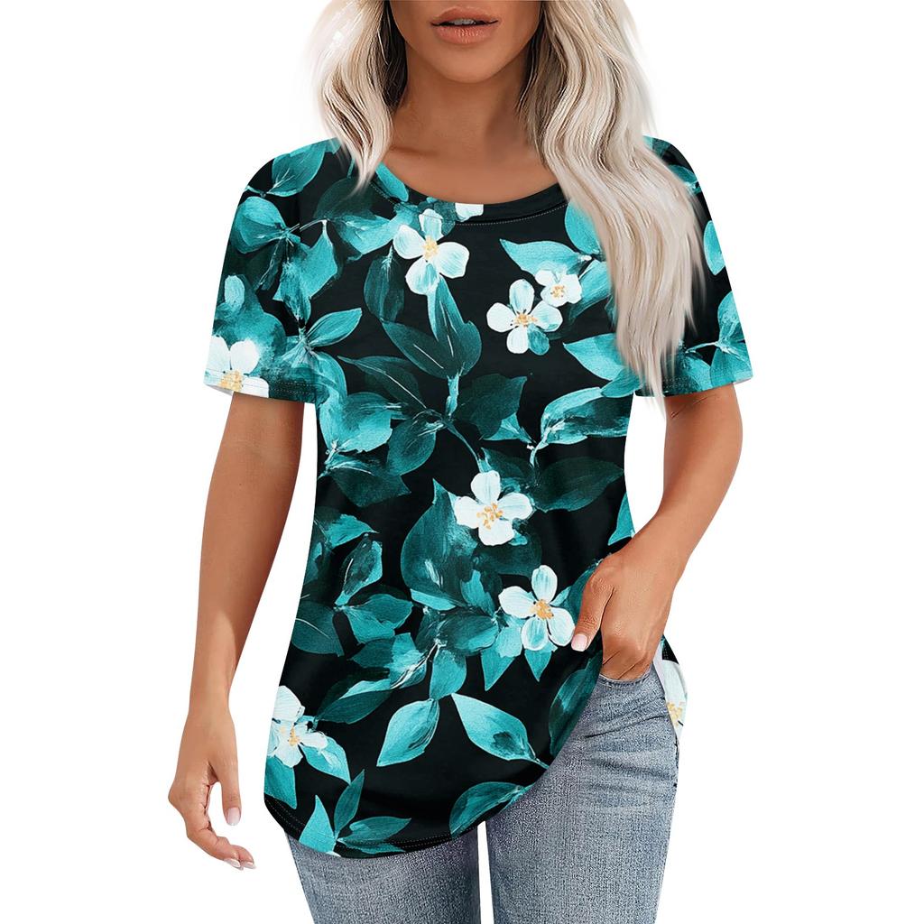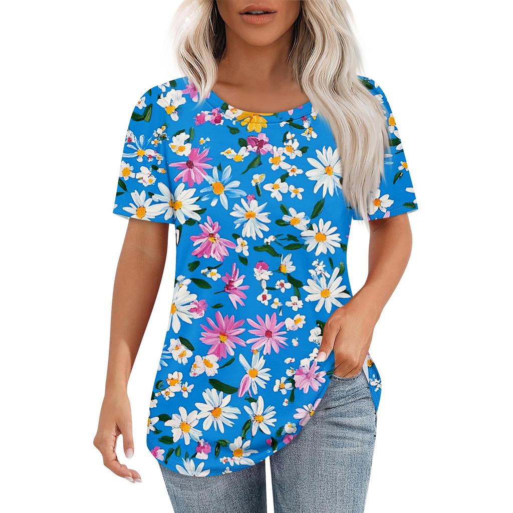 Женская ретро-принтованная модная повседневная футболка с круглым вырезом и коротким рукавом