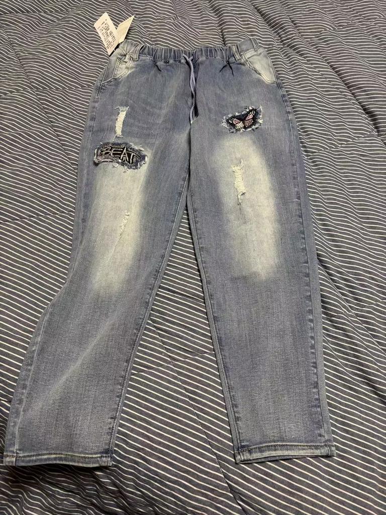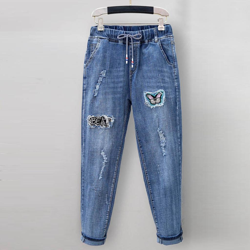 Женские брюки большого размера, эластичные джинсы, свободные полуэластичные брюки