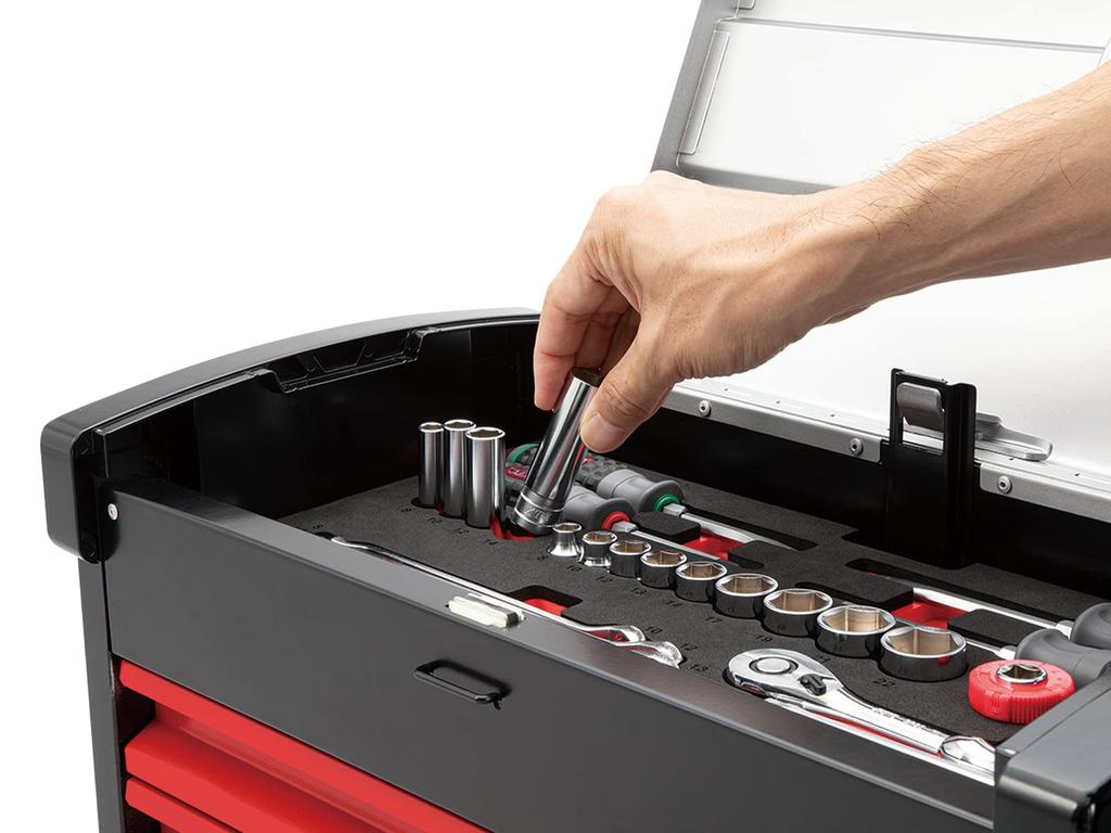Ящик для инструментов Kyoto Machinery Tools, 3 яруса, 3 ящика, серебристый x красный x черный (КТК) ЭКР-103А