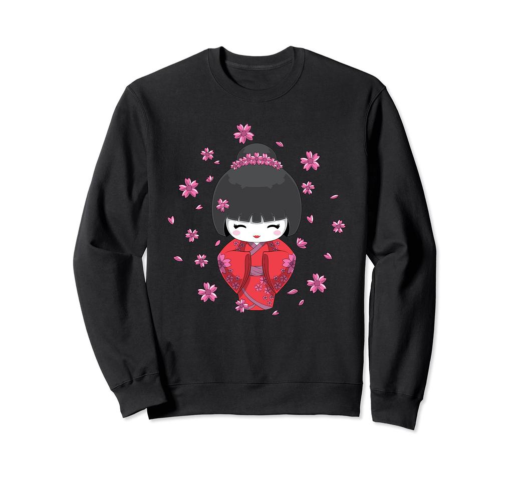 Милое японское кимоно с куклой кокеши и толстовка с изображением цветущей вишни