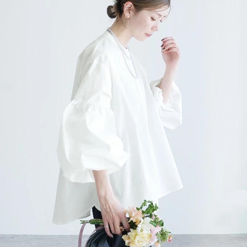 Весенняя новинка женская рубашка с рукавами-фонариками Design Sense Niche Shirt Loose Casual Solid Color Universal Top