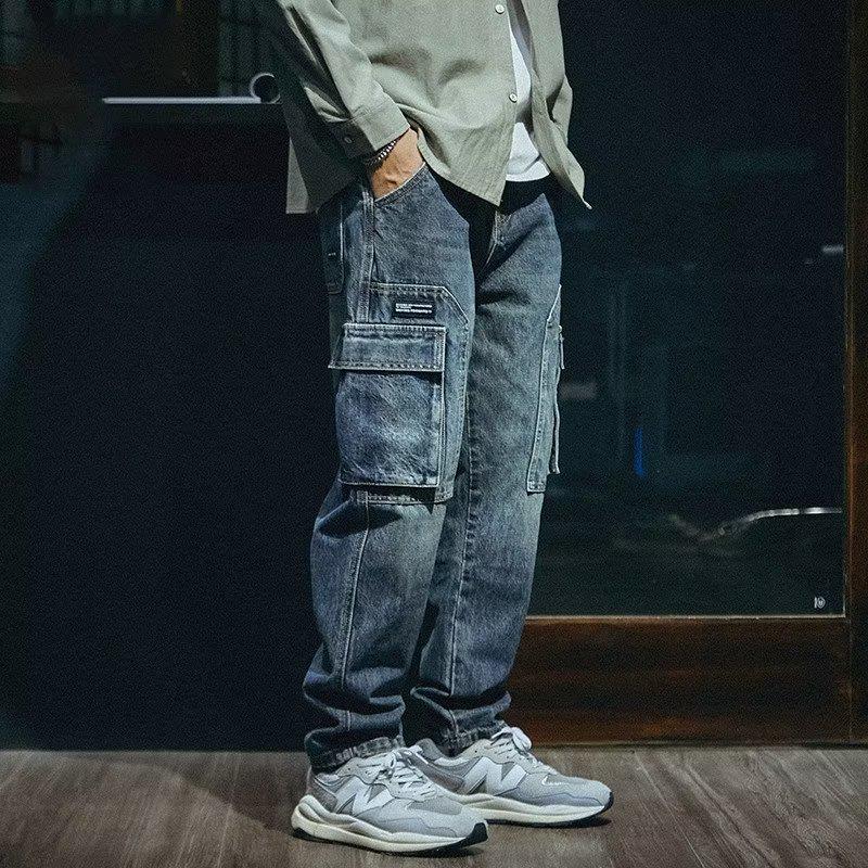 Мужские брюки свободного кроя из стираного потертого денима с несколькими карманами — тренд 2024 года. — купить товар онлайн с бесплатной доставкой до всему миру!