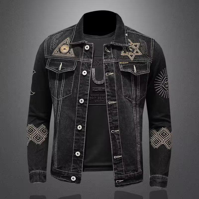 Мужская джинсовая куртка с вышивкой в стиле ретро — европейский и американский стиль, с лацканами, повседневная, свободного кроя, для уличной моды на осень/зиму. — купить товар онлайн с бесплатной доставкой по всему миру!