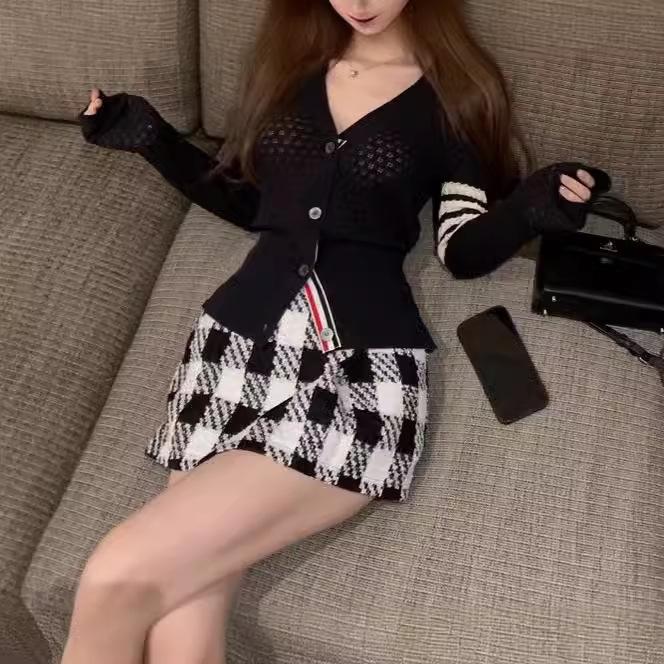 Женский вязаный кардиган с V-образным вырезом 2024 года: Стильный облегающий дизайн с вырезом на весну/лето