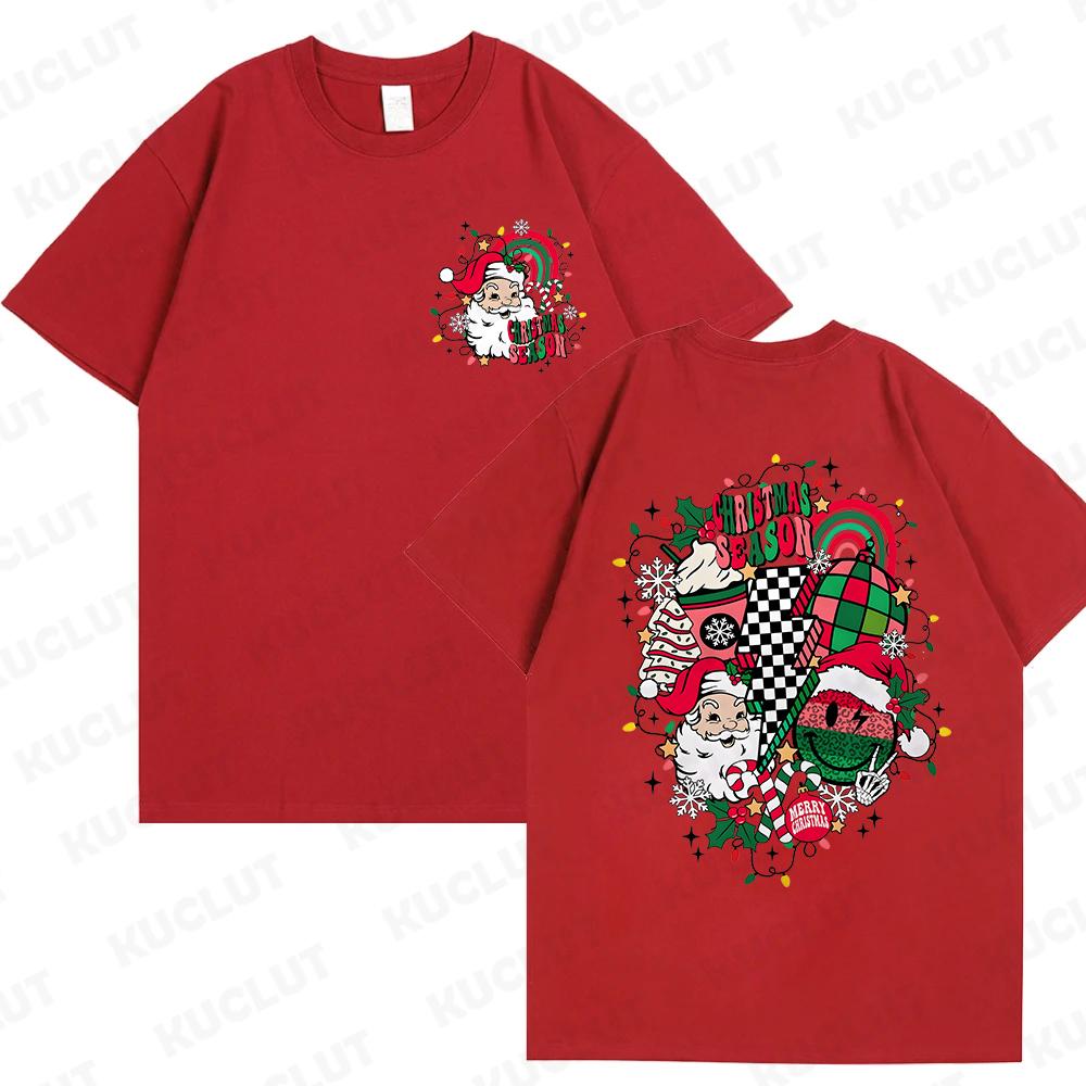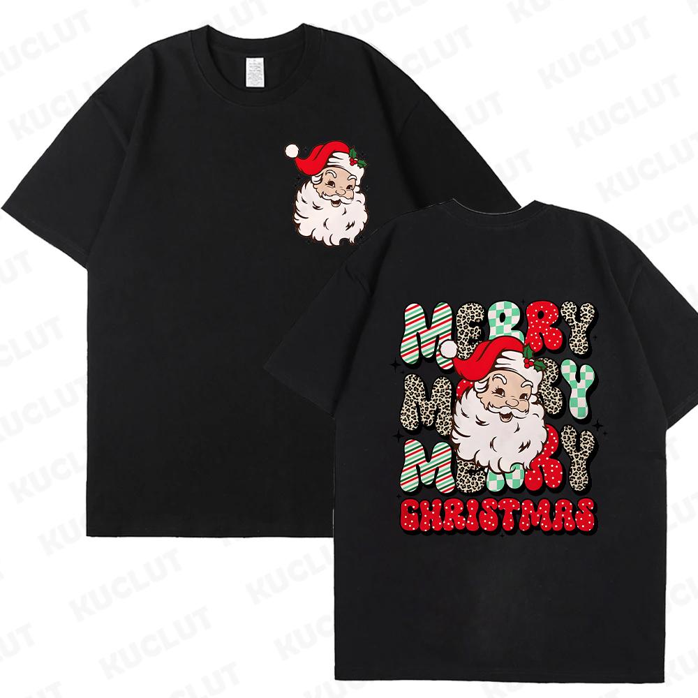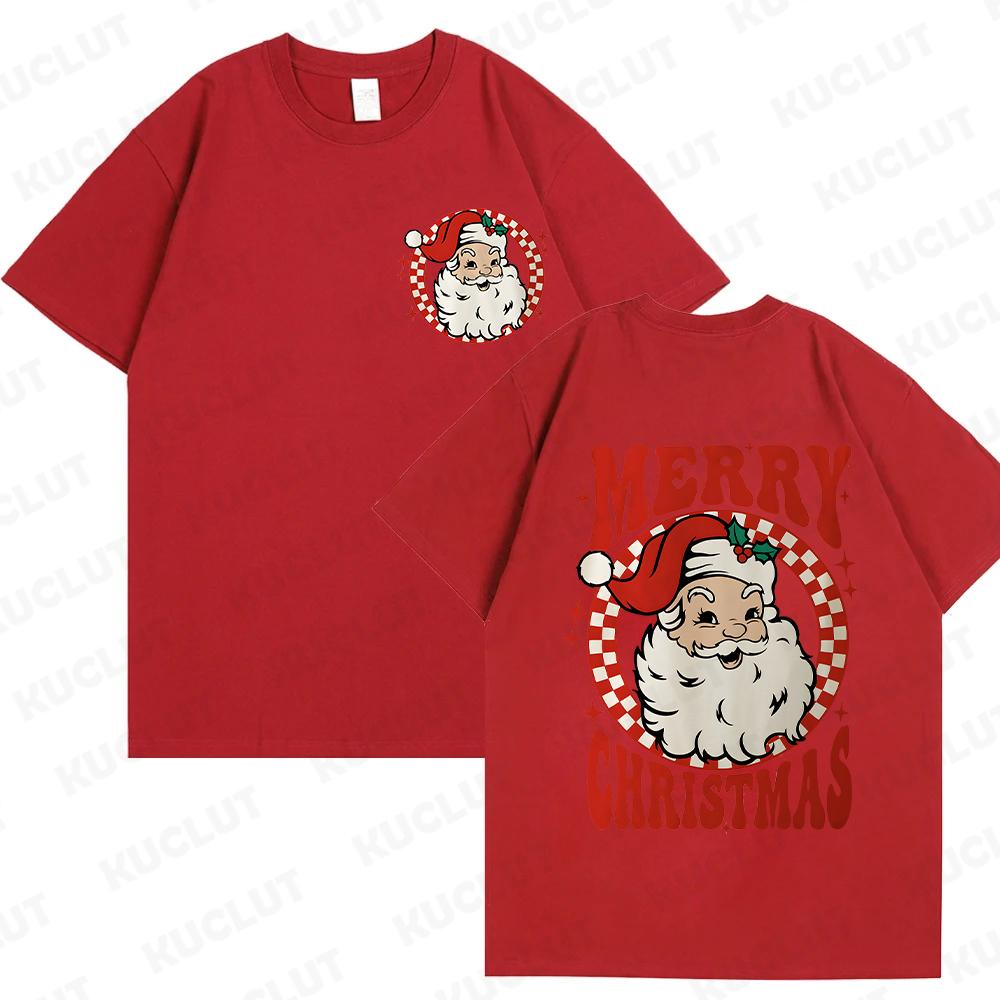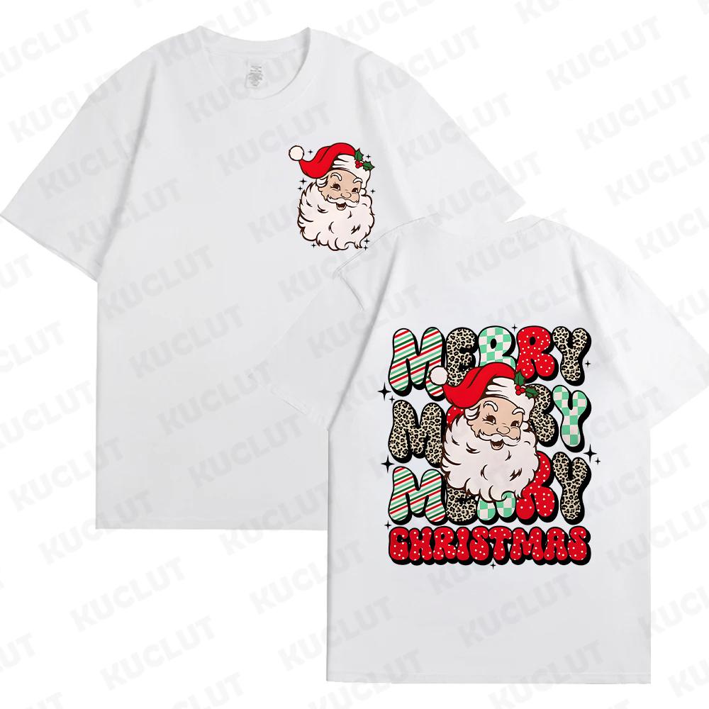 Веселые рождественские футболки с Санта-Клаусом для женщин и мужчин Ретро рождественские футболки с Санта-Клаусом Рождественские флюиды Футболки С Новым годом