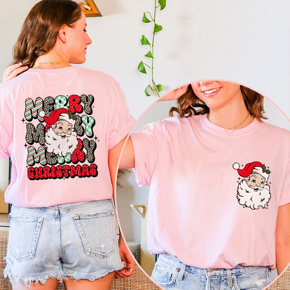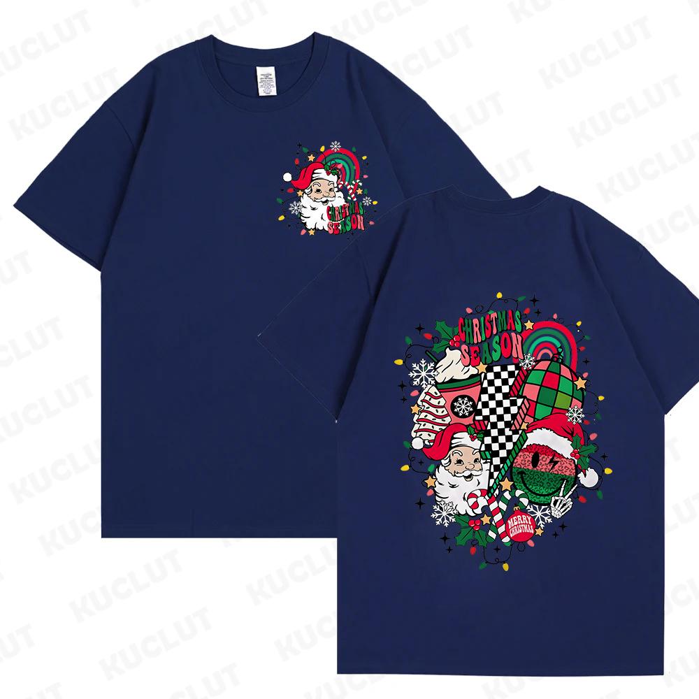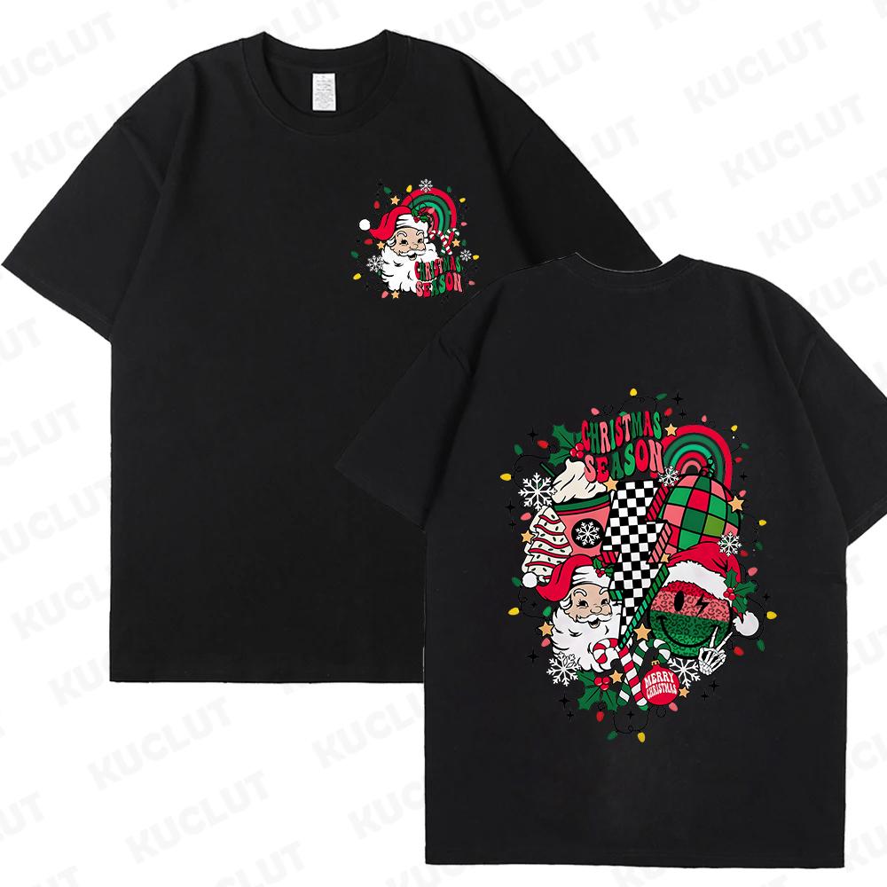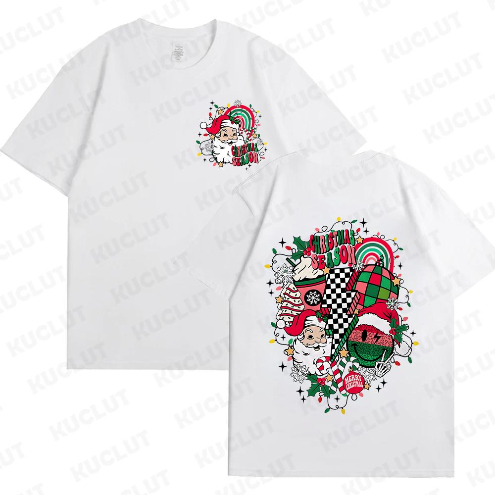 Веселые рождественские футболки с Санта-Клаусом для женщин и мужчин Ретро рождественские футболки с Санта-Клаусом Рождественские флюиды Футболки С Новым годом
