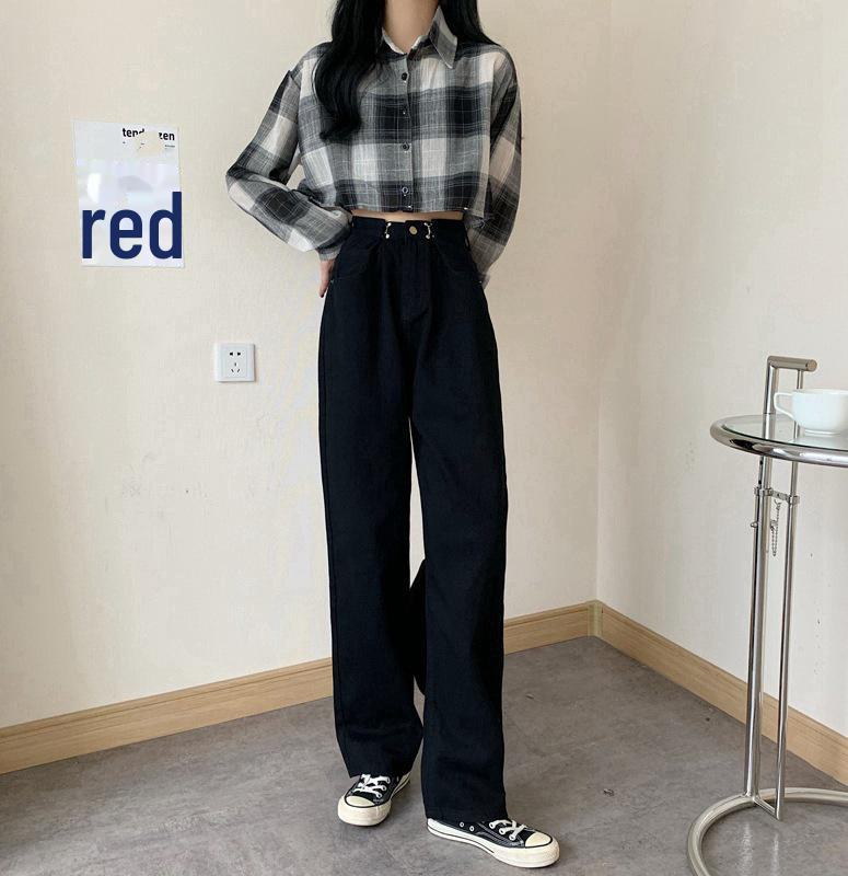 Женские черные джинсы с высокой талией и широкими штанинами — облегающие, свободные, в корейском стиле на весну и осень 2021 г. — купить товар онлайн с бесплатной доставкой по всему миру!
