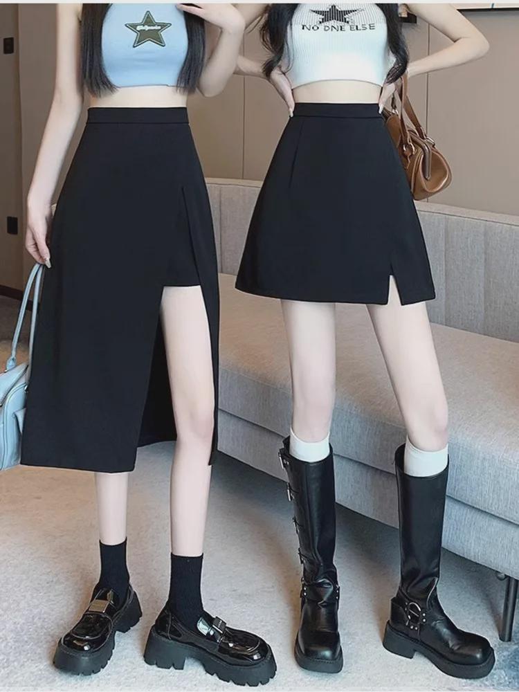 Весенняя юбка-миди в корейском стиле с высокой талией и разрезом 2024 года — купить товар онлайн с бесплатной доставкой по всему миру!