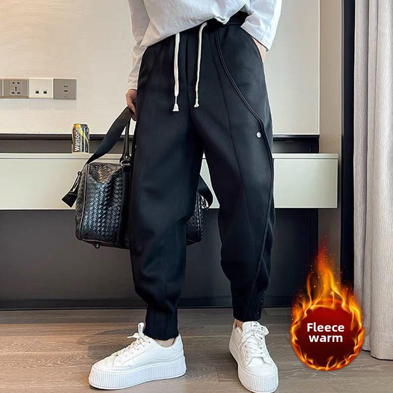 Дополните свой осенний и зимний гардероб этими стильными свободными спортивными брюками, созданными в модном японском стиле.. Эти спортивные штаны изготовлены из высококачественного полиэстера и имеют подкладку из мягкого бархата, обеспечивающую ощущение уюта и комфорта в холодные месяцы.. Манжеты на щиколотках придают им современный вид, делая их идеальными как для повседневных прогулок, так и для отдыха дома.. Благодаря своему универсальному дизайну и превосходной теплоте они станут незаменимым дополнением к коллекции любого модного мужчины.