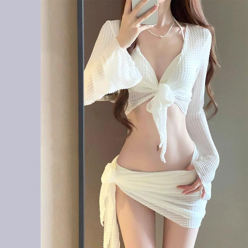 Женский купальник-четверка для трансграничной торговли: Сексуальное бикини с длинными рукавами и утягивающим топом с драпировкой для пляжного отдыха
