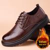Мужские кожаные рабочие туфли на шнуровке: Толстая подошва, увеличивающая рост, универсальная, нескользящая, повседневная натуральная кожа, плюс хлопок.