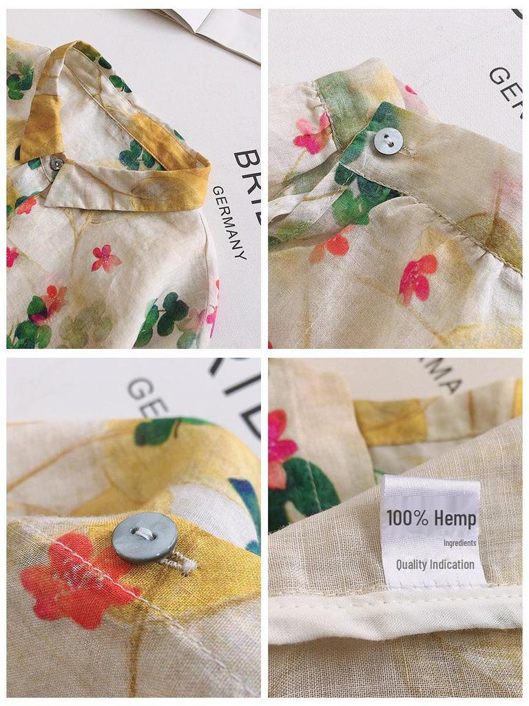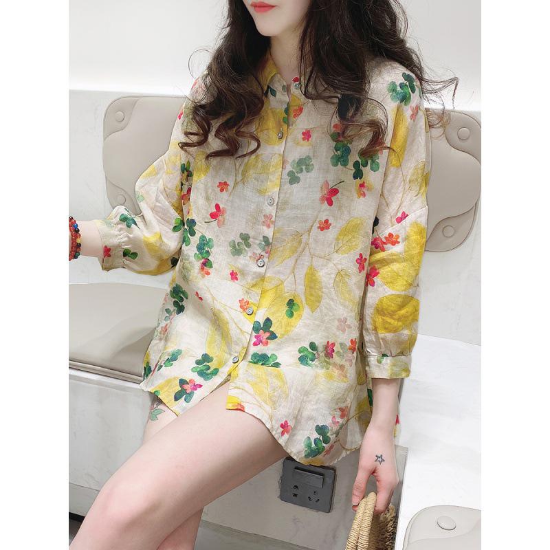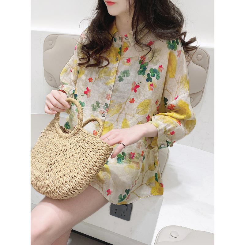 Топ А-силуэта из рами с цветочным принтом и рукавами «летучая мышь» в корейском стиле — свободный, модный и милый