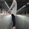 Мужская хип-хоп футболка с длинным рукавом, коротким передом и длинной спиной, черно-белые полосы