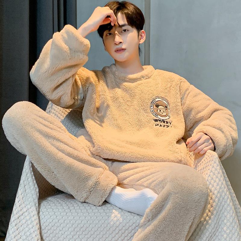 Мужской фланелевый пижамный комплект Smiley Face - утолщенный коралловый флис для осени/зимы — купить товар онлайн с бесплатной доставкой по всему миру!