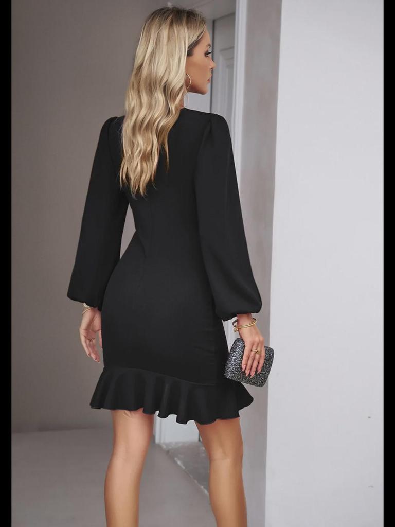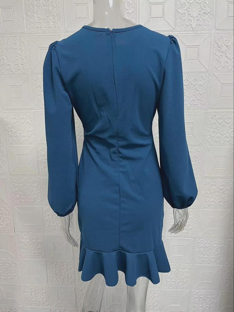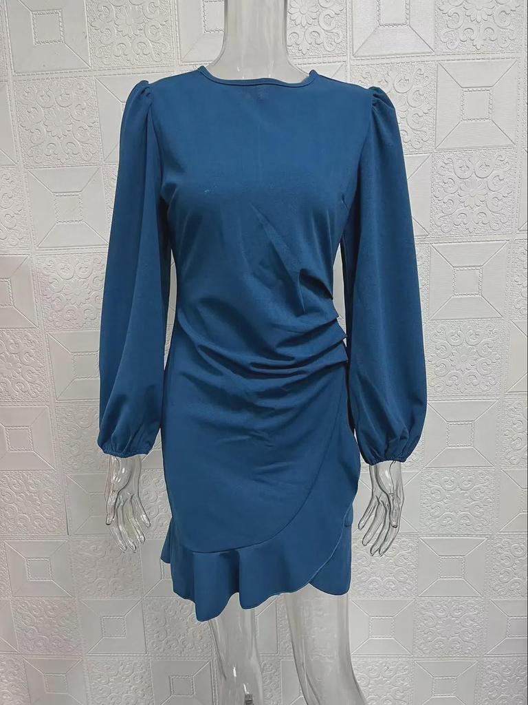Женское платье весна/осень 2024 года с рукавами-фонариками, однотонное