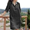 Свободное платье с V-образным вырезом на весну и лето для женщин среднего возраста: Средняя длина, большой размер
