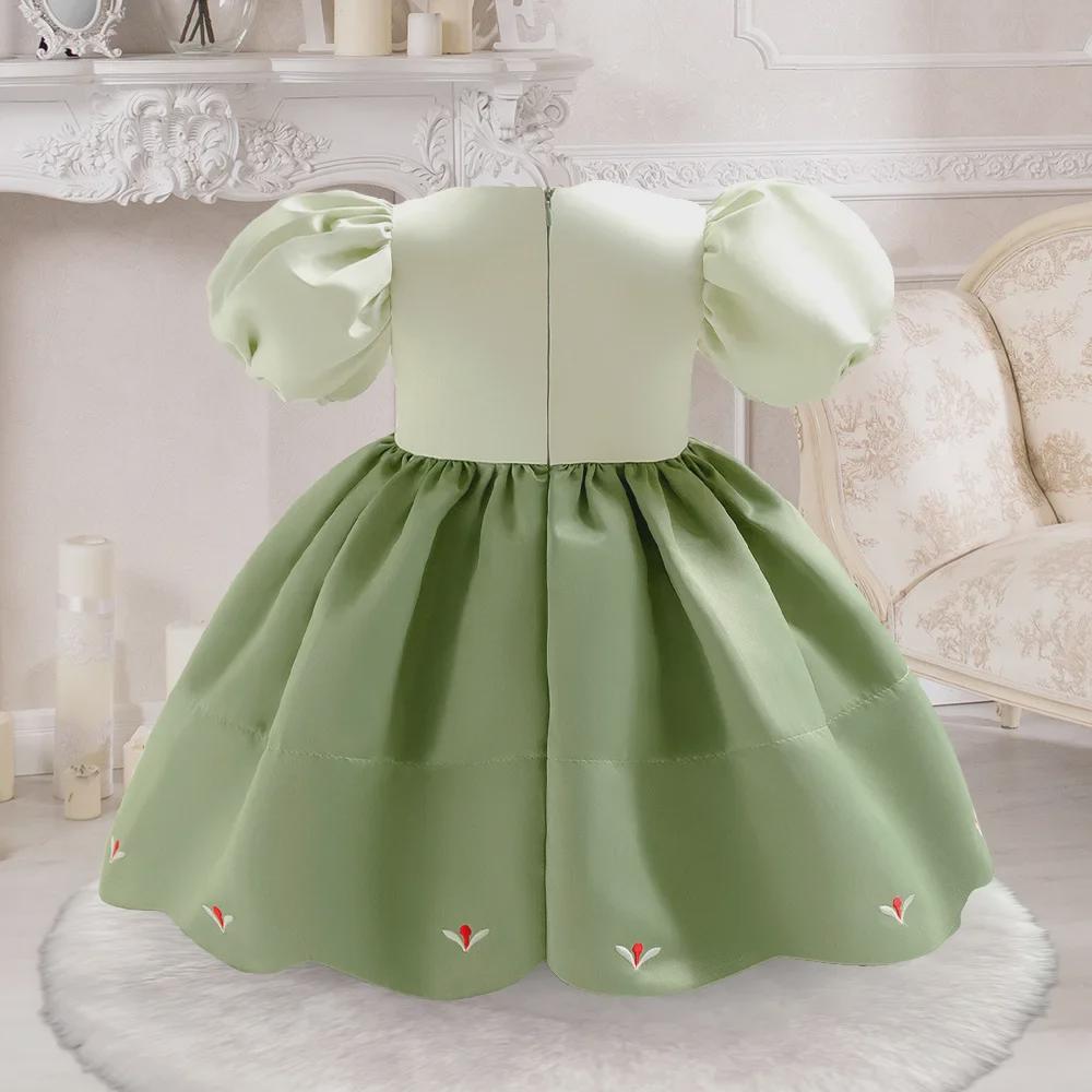 Это очаровательное платье на день рождения для годовалых девочек изготовлено из мягкой хлопковой смеси, обеспечивающей комфорт и воздухопроницаемость для вашей малышки.. Благодаря симпатичным рукавам-фонарикам и изящной вышивке оно выглядит восхитительно и идеально подходит для празднования особого дня.. Платье сочетает в себе элегантность и игривый стиль, что делает его идеальным выбором для памятного празднования первого дня рождения.