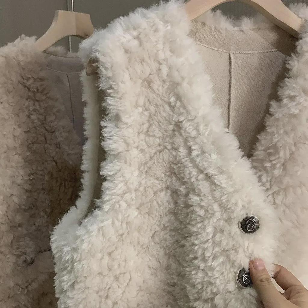 Женский жилет из овечьей шерсти с кожей и мехом - мода осень/зима 2025 года, универсальная и утолщенная, модная куртка знаменитостей — купить товар онлайн с бесплатной доставкой по всему миру!