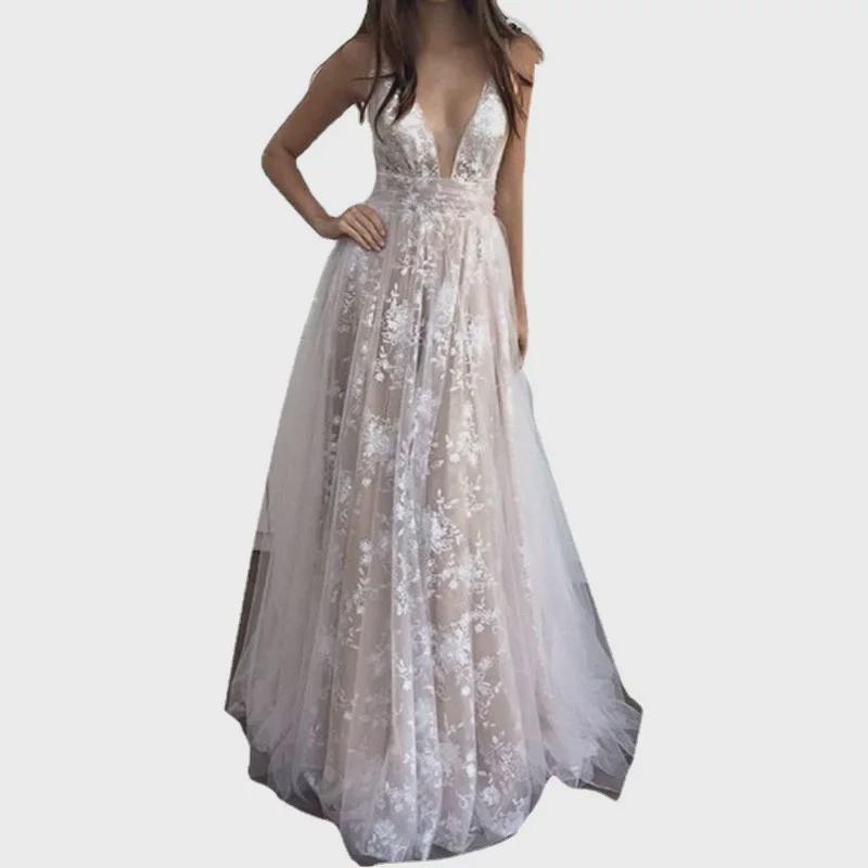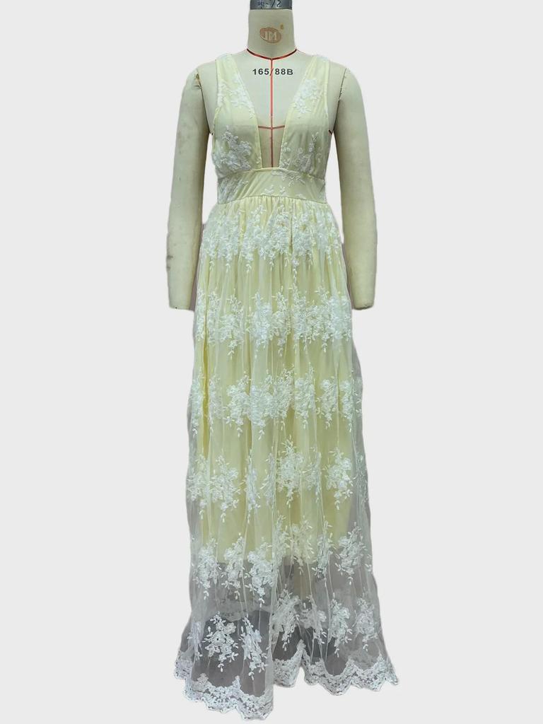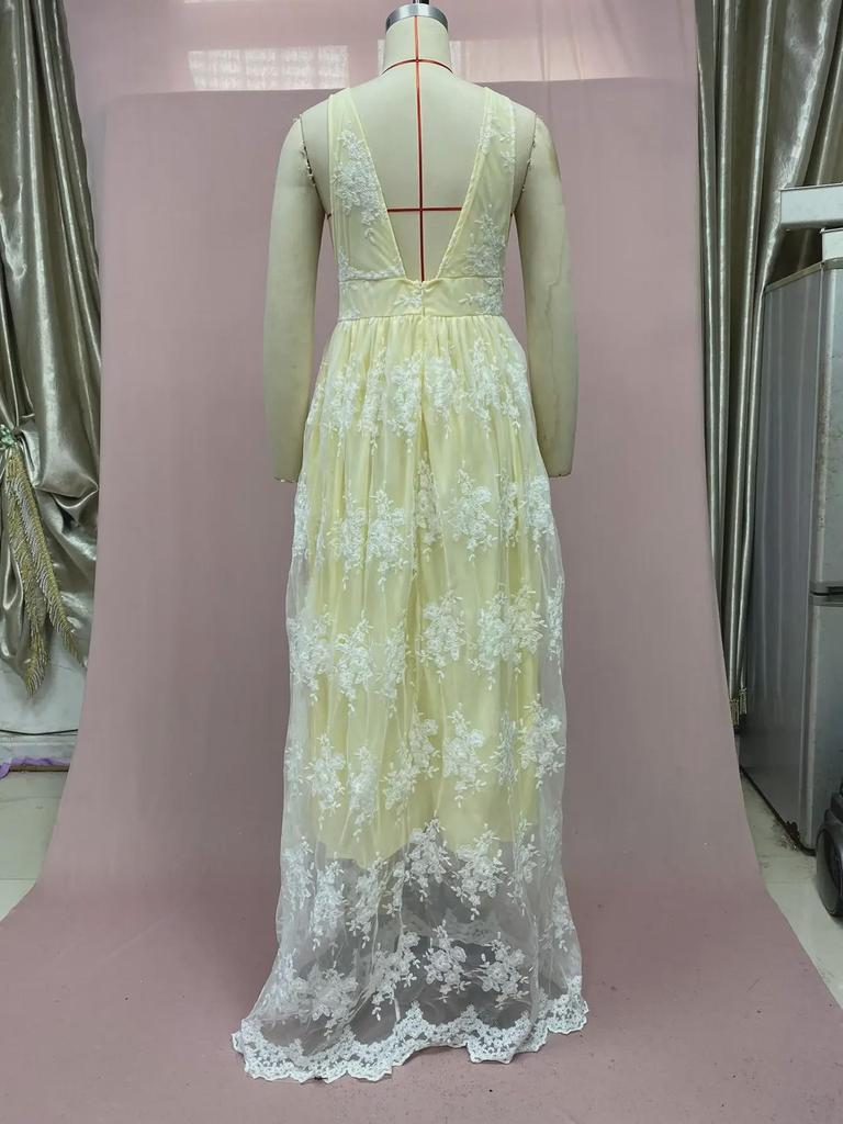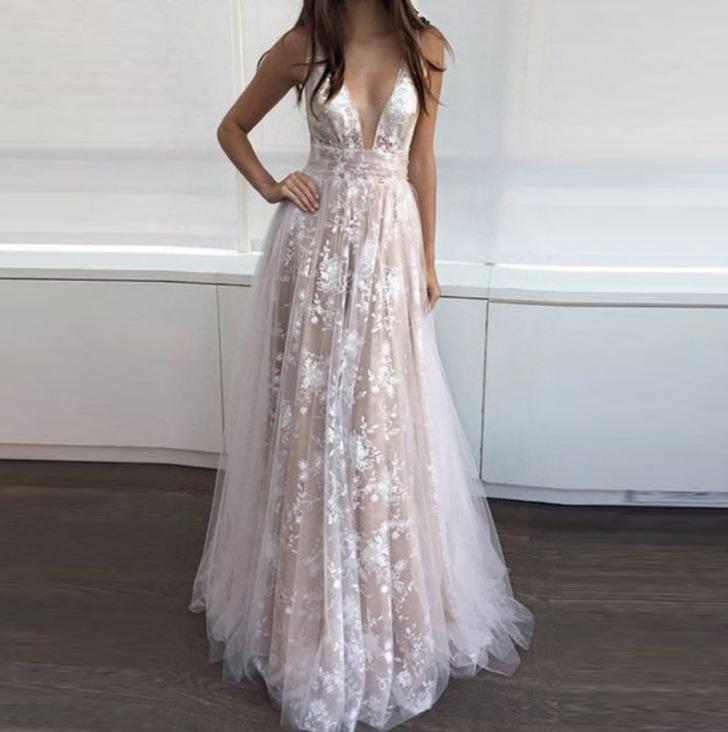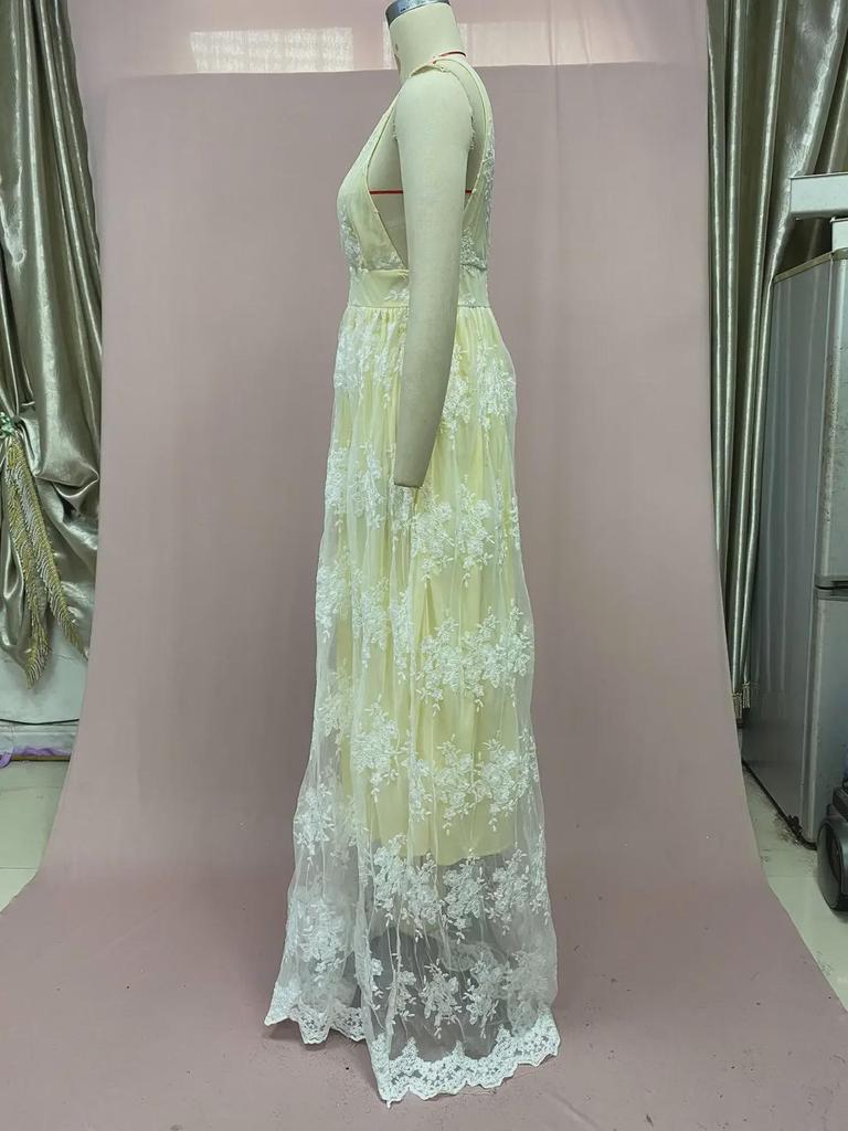 Лето 2025 г. Женское сексуальное кружевное вечернее платье с глубоким V-образным вырезом без рукавов для европейских и американских женщин