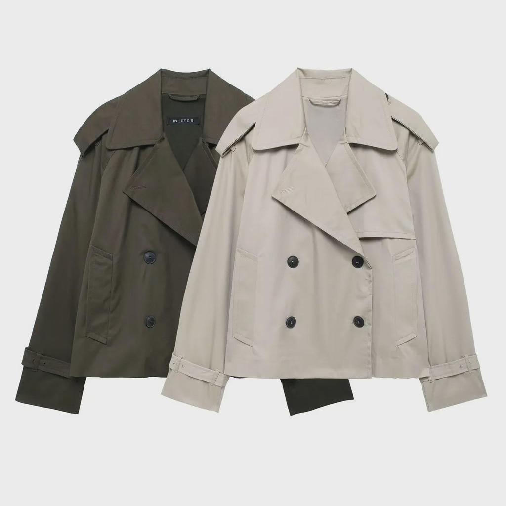 Осень 2024 г. Женская двубортная короткая ветровка в европейском и американском стиле.