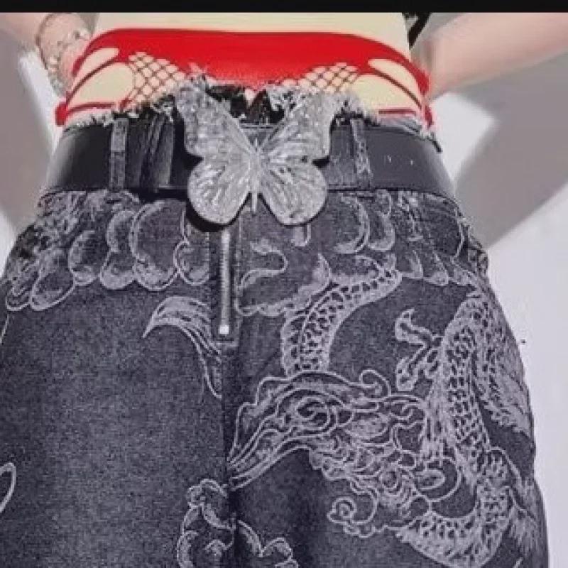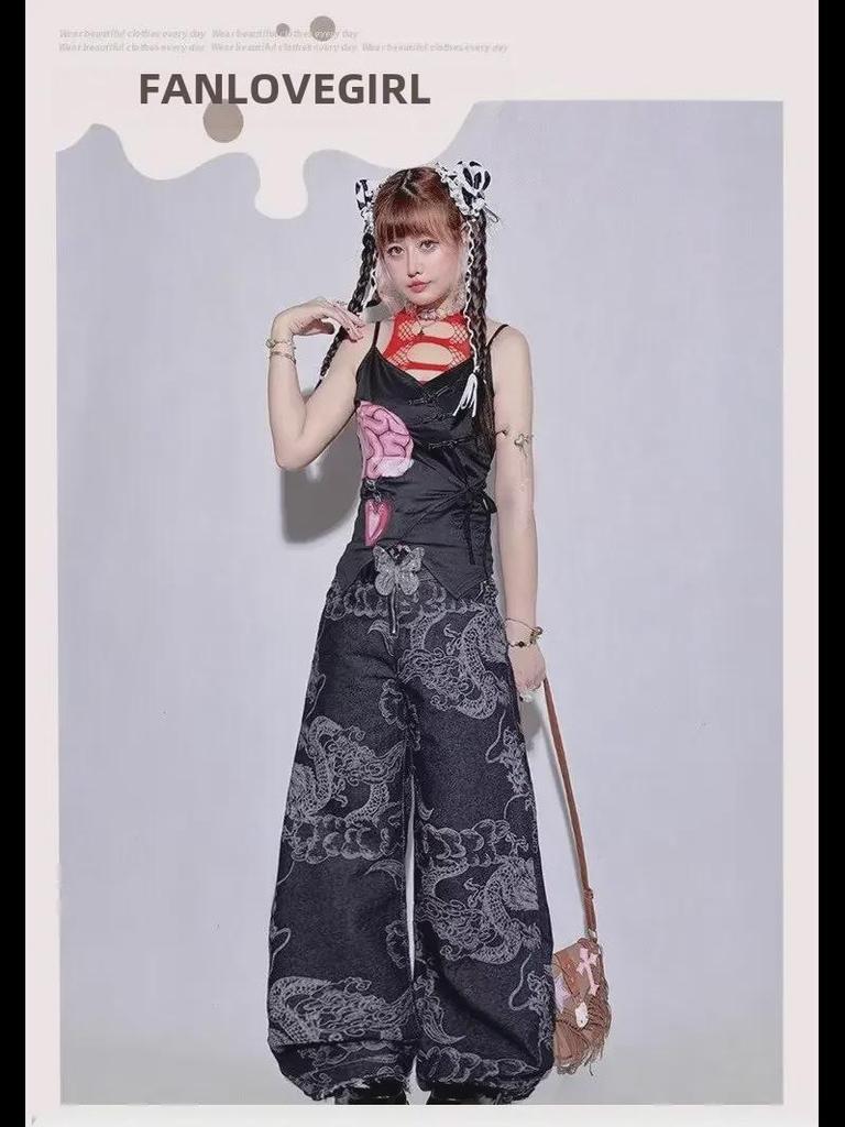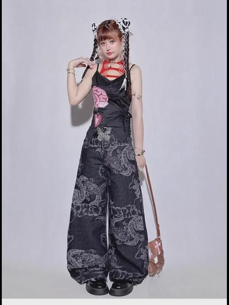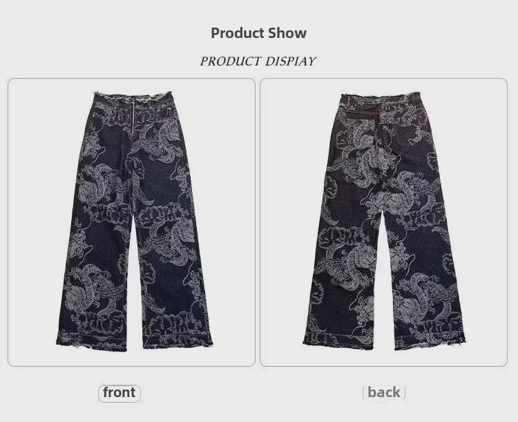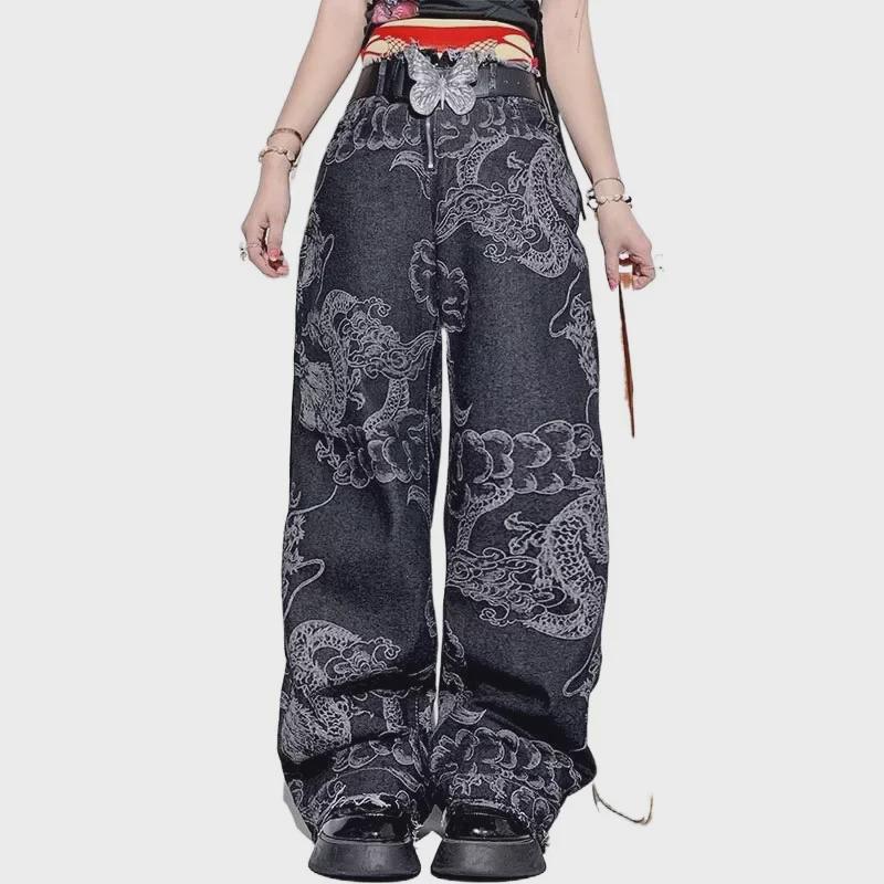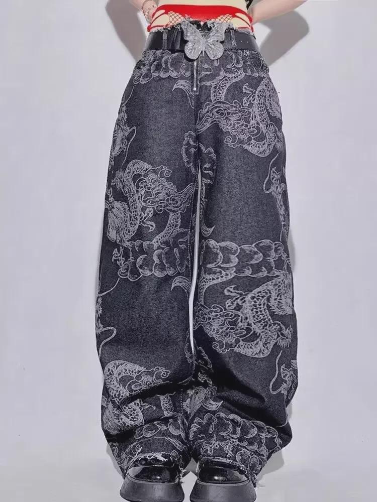 Джинсы с высокой талией и широкими штанинами весна/лето 2024 года с вышитым драконом