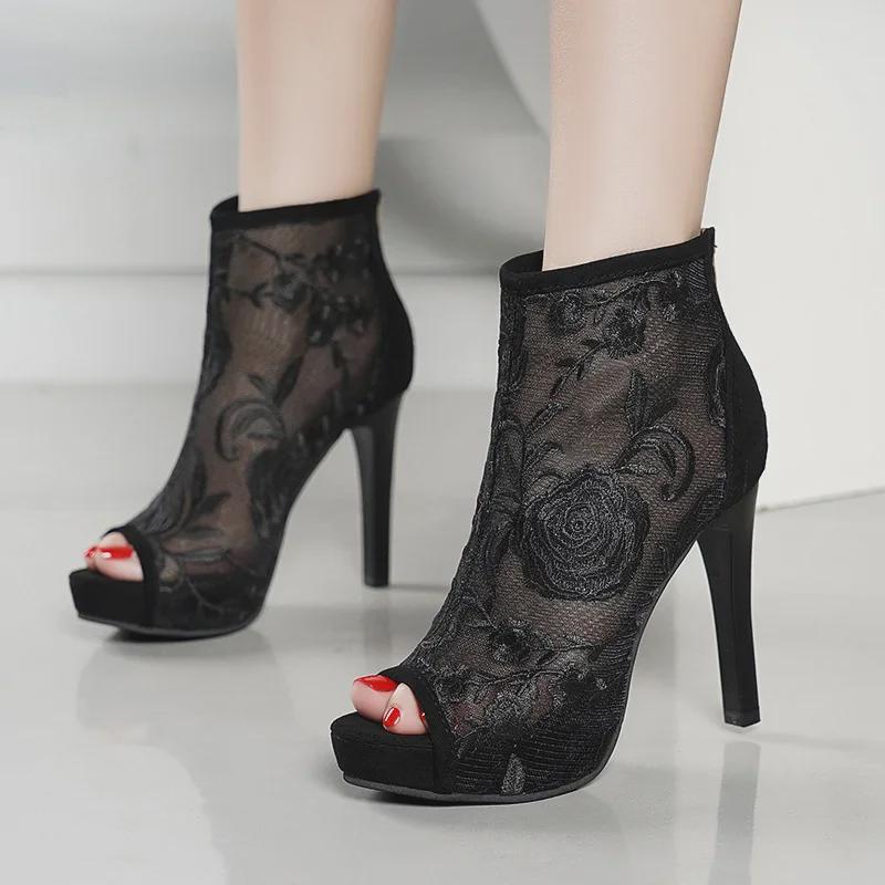 Почувствуйте элегантность с этими великолепно выполненными босоножками на высоком каблуке, которые сочетают в себе традиционное очарование и современный стиль.. Эти сандалии с замысловатым вышитым узором выполнены из дышащей сетчатой ткани, что обеспечивает комфорт и привлекательность.. Соблазнительный дизайн с открытым носком дополнит любой наряд, а прочная резиновая подошва обеспечит уверенную походку.. Эти сандалии с удобной застежкой-молнией сзади и комфортной сетчатой подкладкой станут идеальным выбором, чтобы добавить нотку изысканности в ваш гардероб.