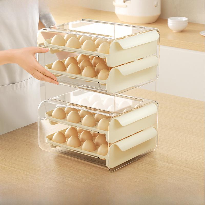 Двухслойный прозрачный контейнер для хранения яиц с 32 отделениями для холодильника или использования на столешнице