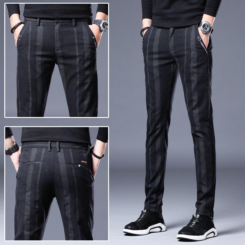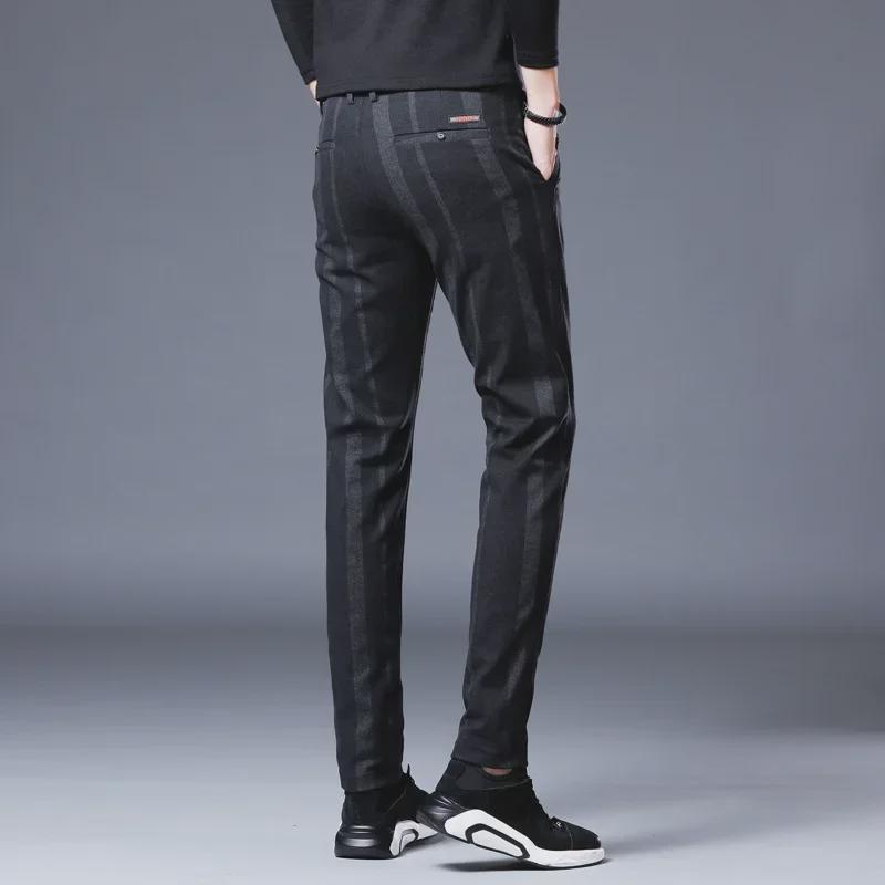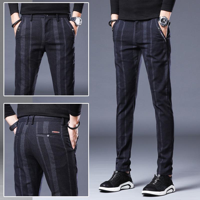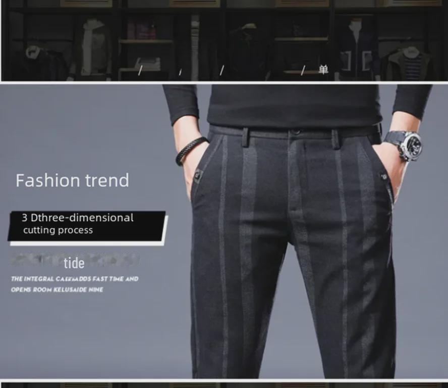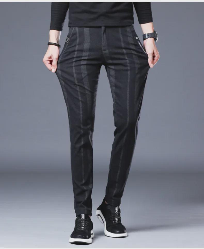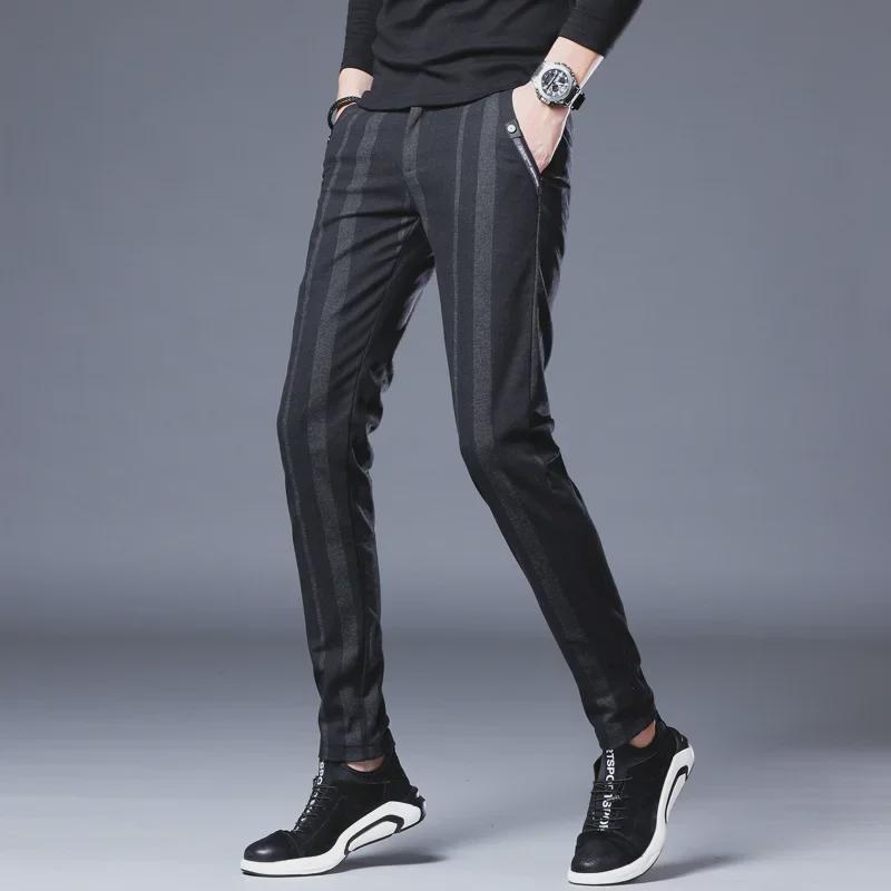 Мужские узкие брюки в эластичную полоску — повседневные, дышащие, молодежный британский стиль на все времена года