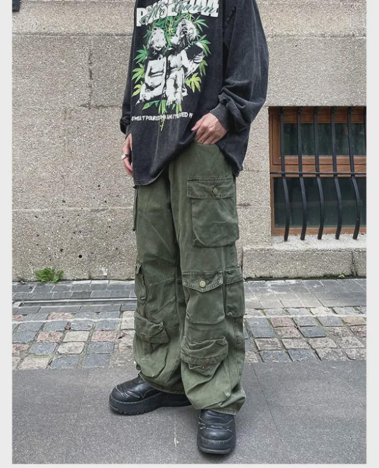 Мужские рабочие брюки Retro American Vibe с несколькими карманами — повседневные, свободные и прямого кроя