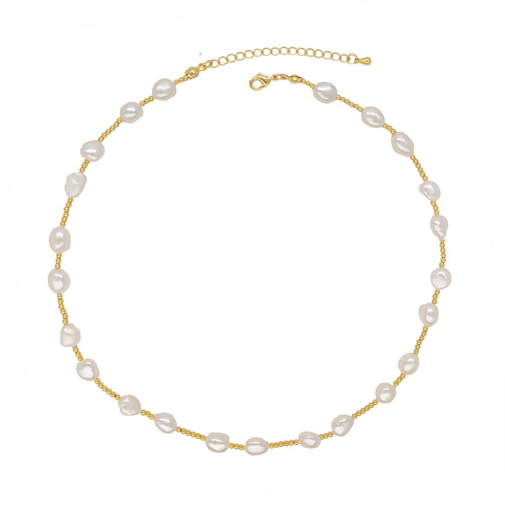 Элегантное ожерелье из натурального пресноводного жемчуга с бусинами, покрытыми 18-каратным золотом - шикарная и универсальная цепочка на ключицу — купить товар онлайн с бесплатной доставкой по всему миру!