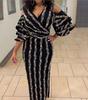 Сексуальное черное платье средней длины с V-образным вырезом и разрезом в европейском и американском стиле на осень/зиму 2020 г.