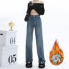 Женские светлые плюшевые джинсы широкого кроя с высокой талией, утолщенные, свободные, теплые, маленького размера.