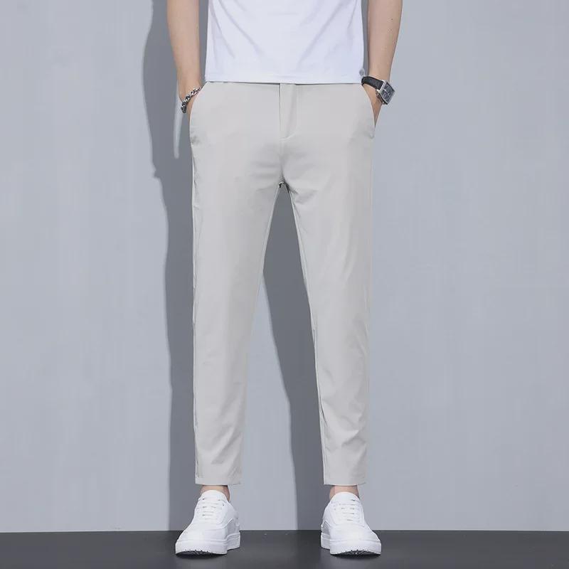 Ощутите максимальный комфорт и стиль в этих легких летних повседневных брюках с девятью точками для мужчин.. Эти брюки, изготовленные из высококачественной хлопковой смеси, обеспечивают воздухопроницаемость и долговечность в теплую погоду.. Благодаря своему универсальному дизайну они подходят как для повседневных выходов, так и для полуофициальных мероприятий.. Наслаждайтесь идеальным балансом функциональности и элегантности в этих элегантных брюках.