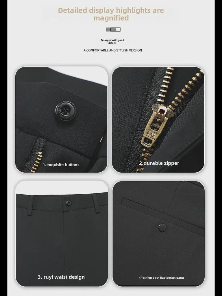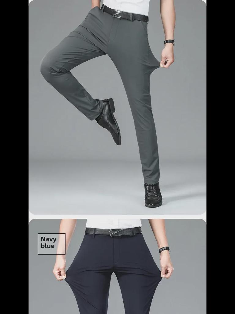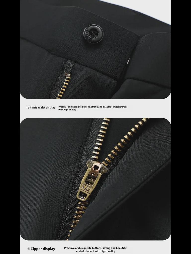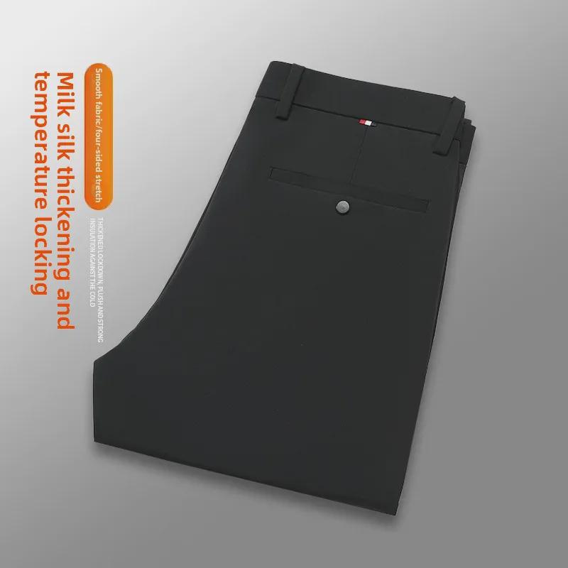 Мужские повседневные брюки из утолщенного нейлона - молочный шелк, высокая резинка, прямые, свободные деловые брюки с бархатной подкладкой для весны и осени.
