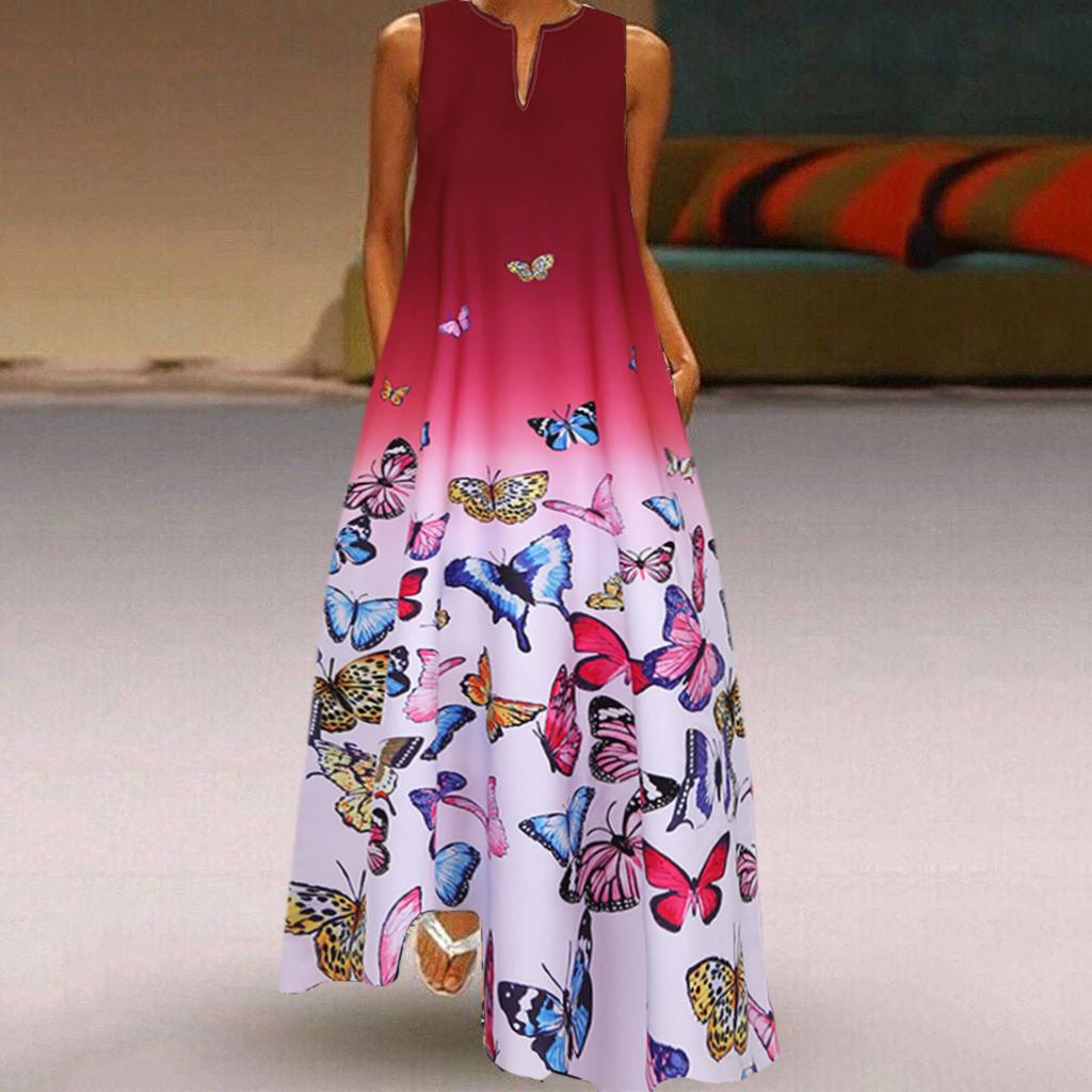 Новое длинное платье без рукавов с принтом бабочек 2020 года — купить товар онлайн с бесплатной доставкой по всему миру!